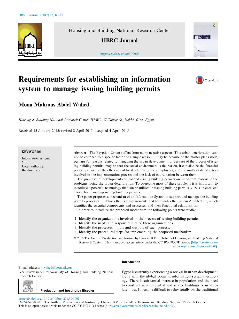 发展控制和建筑许可的发放过程是城市恶化面临的重要原因。为了克服这些问题中的大多数,引入可用于颁发建筑许可证的强有力的技术是重要的。GIS是颁发建筑许可证的最佳选择。