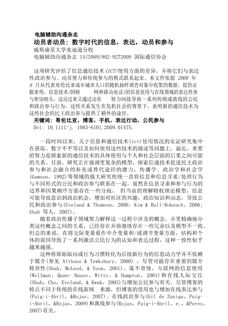 动员者动员:数字时代的信息,表达,动员和参与外文翻译资料 2023-02-07 08:59:10 英语原文共 5 页,剩余内容已隐藏,支付完成后下载完整资料 英语译文共 5 页,剩余内容已隐藏,支付完成后下载完整资料 资料编号:[259352],资料为PDF文档或Word文档,PDF文档可免费转换为Word 您需要先支付 30元 才能查看全部内容!立即支付 发小红书推广免费获取该资料资格。点击链接进入获取推广文案即可: Ai一键组稿 | 降AI率 | 降重复率 | 论文一键排版 PREVIOUS NEXT 您可能感兴趣的文章 博弈论视角下城市大气污染治理中的政企互动关系——以江苏省南京市为例开题报告 复合生态治理视域下特色小城镇培育路径研究:以睢宁沙集为个案文献综述 “互联网 政务服务”条件下政务公开创新路径研究开题报告 当前我国智慧社区养老模式研究开题报告 基层政府实施乡村振兴战略的模式、困境及其化解路径研究开题报告 疫情对高校毕业生就业的影响及信息化对策外文翻译资料 糖尿病风险评分 ——预测2型糖尿病风险的实用工具外文翻译资料 中国初级卫生保健质量面临的挑战与建议外文翻译资料 电子政务:博茨瓦纳的挑战与机遇外文翻译资料 中国深圳的排放交易和碳市场行情外文翻译资料