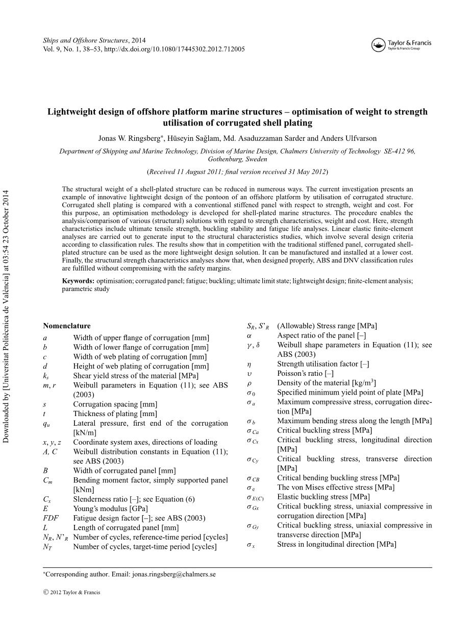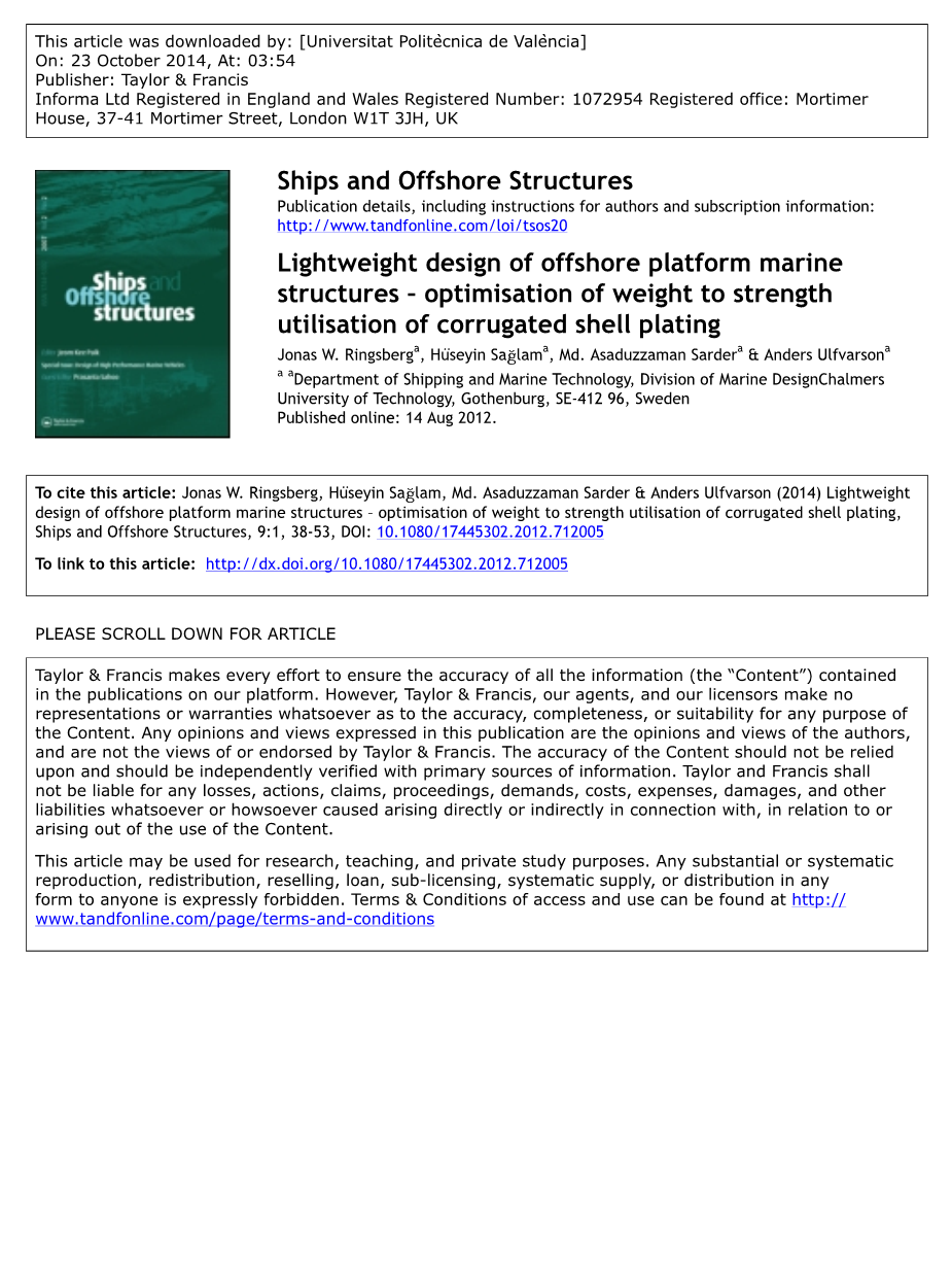 JonasW.Ringsberglowast;, Huuml;seyin Sağlam, Md.Asaduzzaman Sarder 和 Anders Ulfvarson, 船舶与海洋技术部,海工设计部门,查尔姆斯理工大学SE-412 96,哥德堡,瑞典