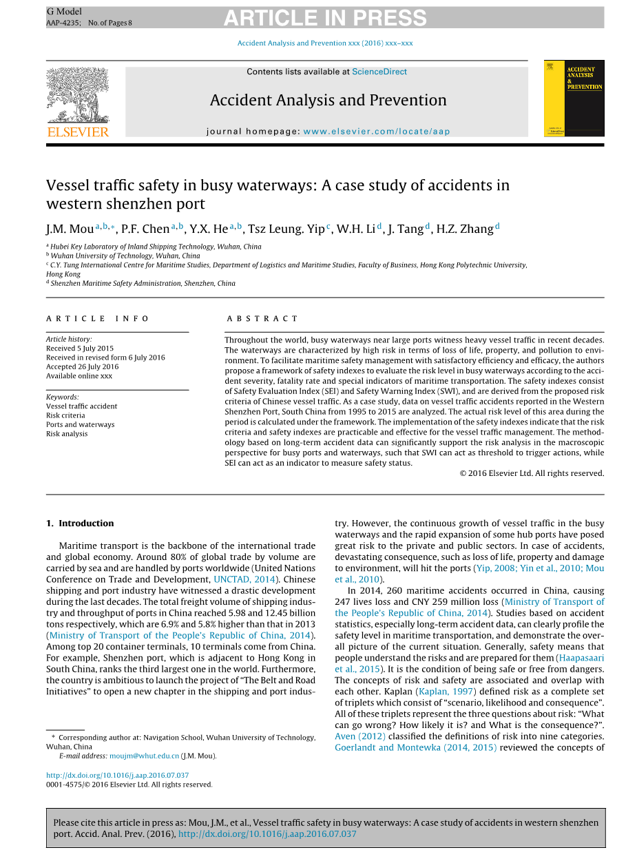 繁忙水道的船舶交通安全:深圳西部港口事故案例研究