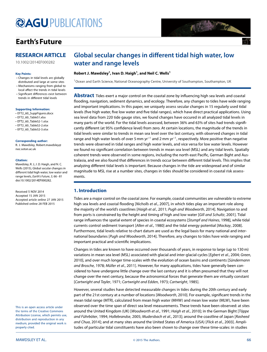 Robert J. Mawdsley 1 , Ivan D. Haigh 1 , 和 Neil C. Wells 1