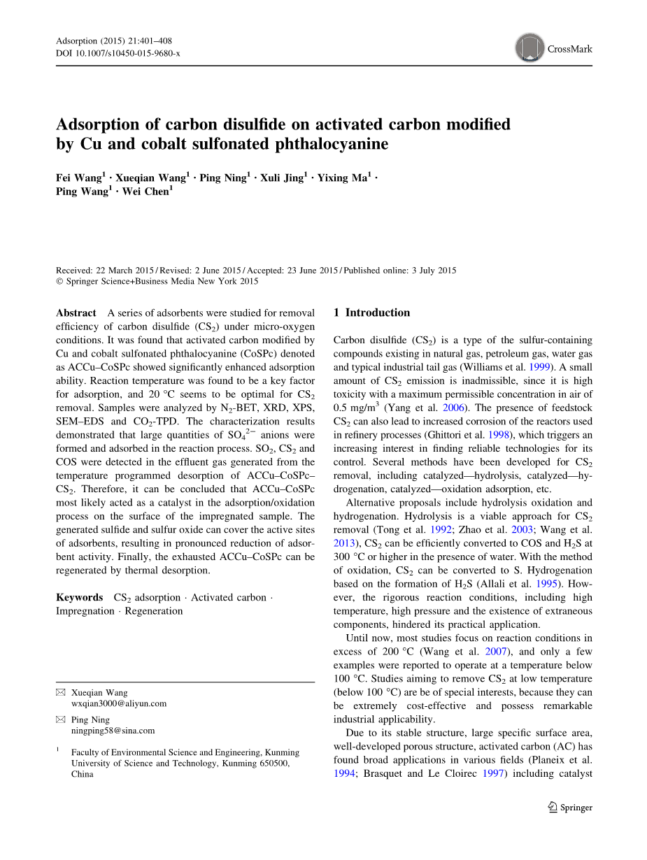 铜钴磺化酞菁修饰活性炭对二硫化碳的吸附