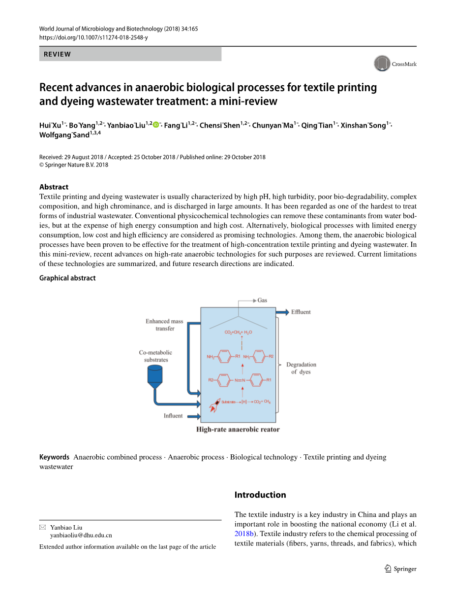 关于纺织品印花厌氧生物过程和染色废水处理的进展综述外文翻译资料