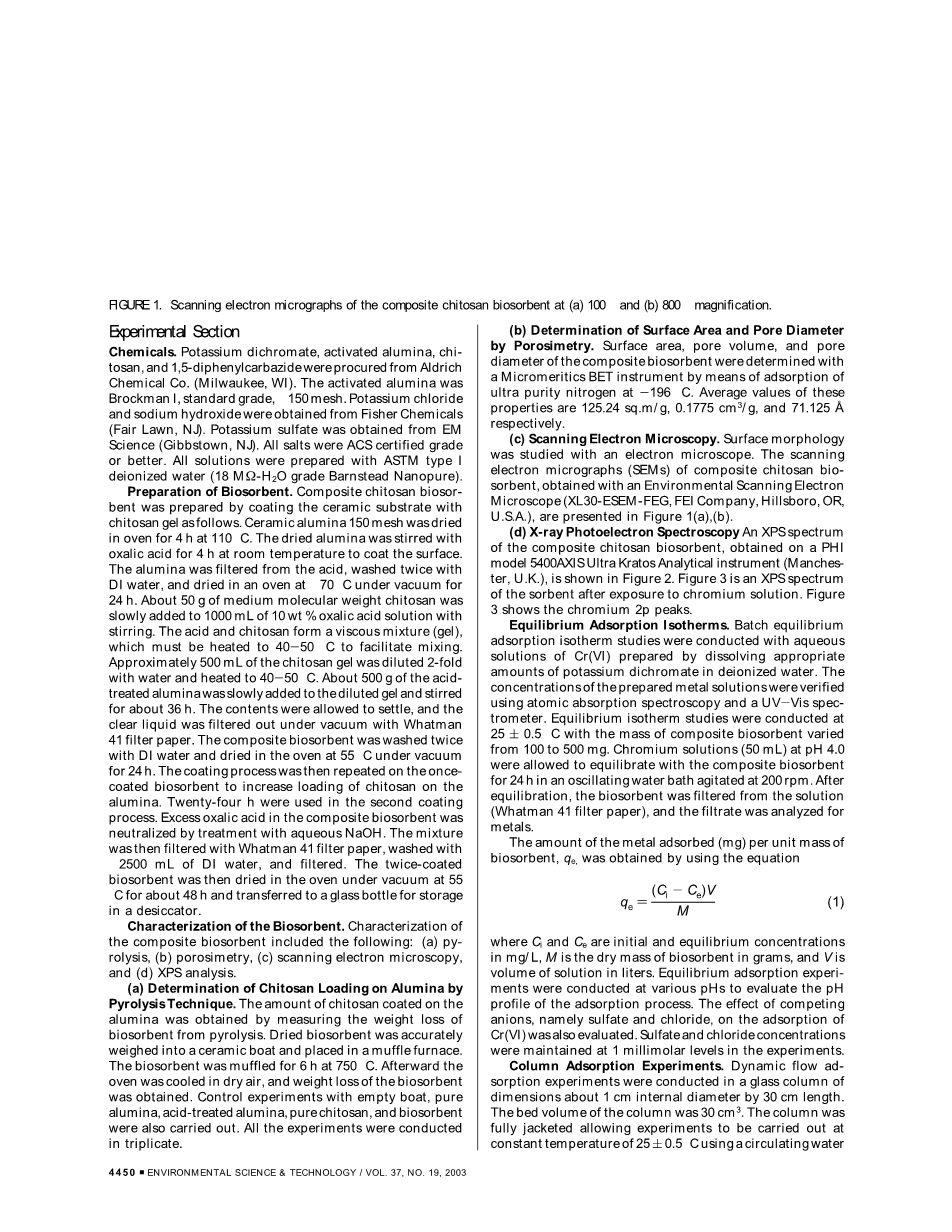 这种由氧化铝为载体的生物吸附剂由高温热裂解、孔性计、电子显微镜扫描、X射线光电子能谱测定其特征 。在Brunauer-Emmett-Teller (BET)吸附等温线基础上,它的表面积、孔径 、孔径分布由氮孔率决定。