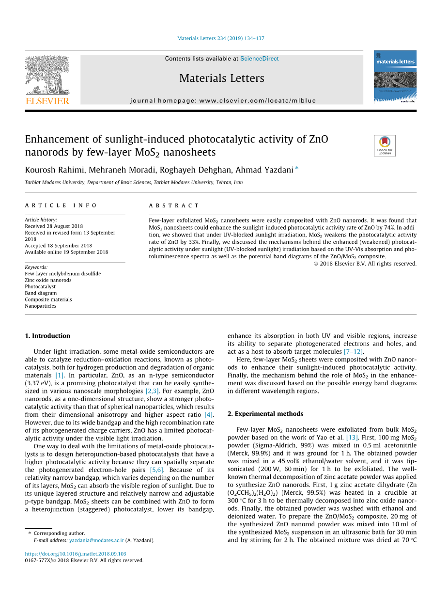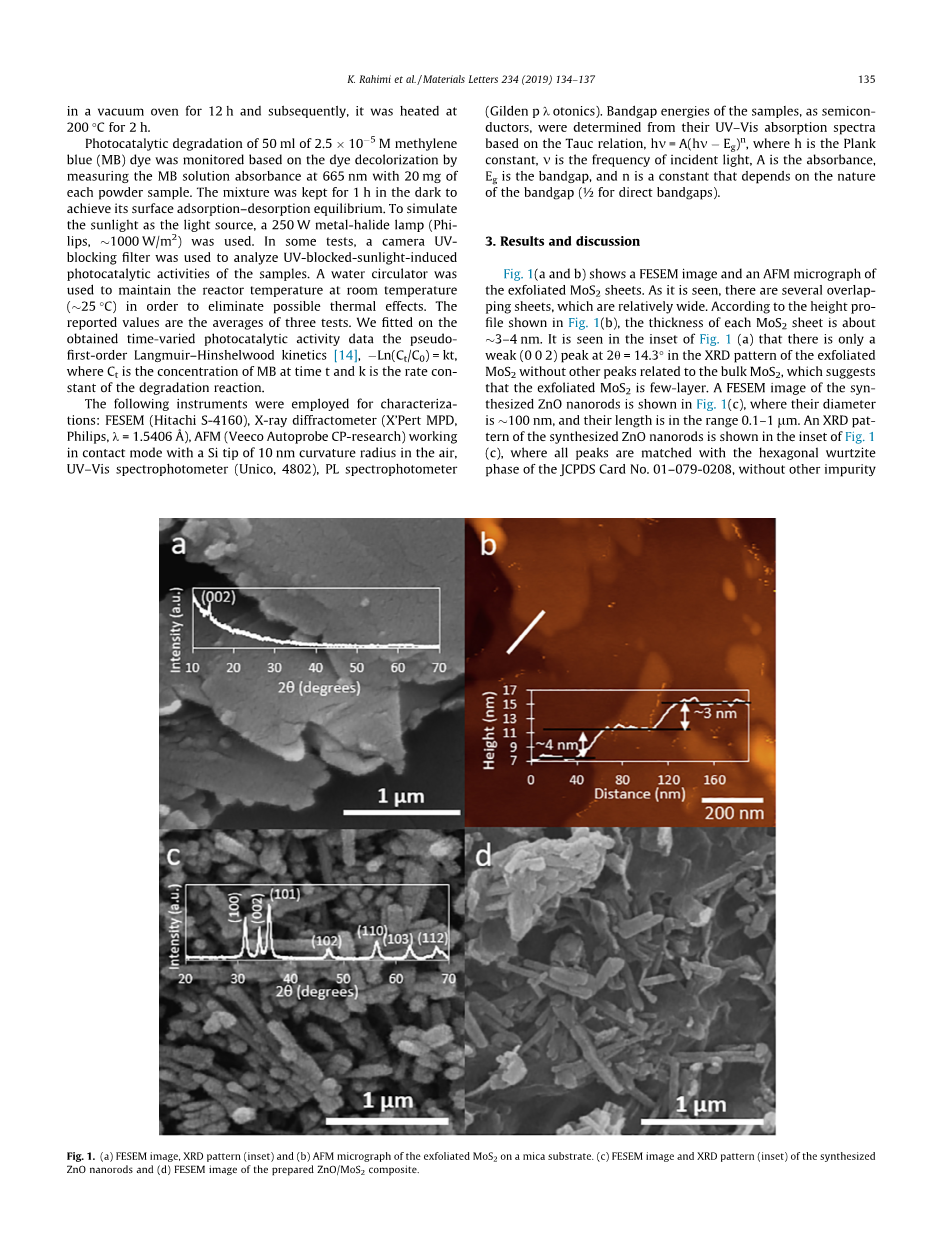 我们用MoS2片与ZnO纳米棒结合以增强其光催化活性。最后,根据在不同的波长区域可能的能带图讨论了其增强机制。