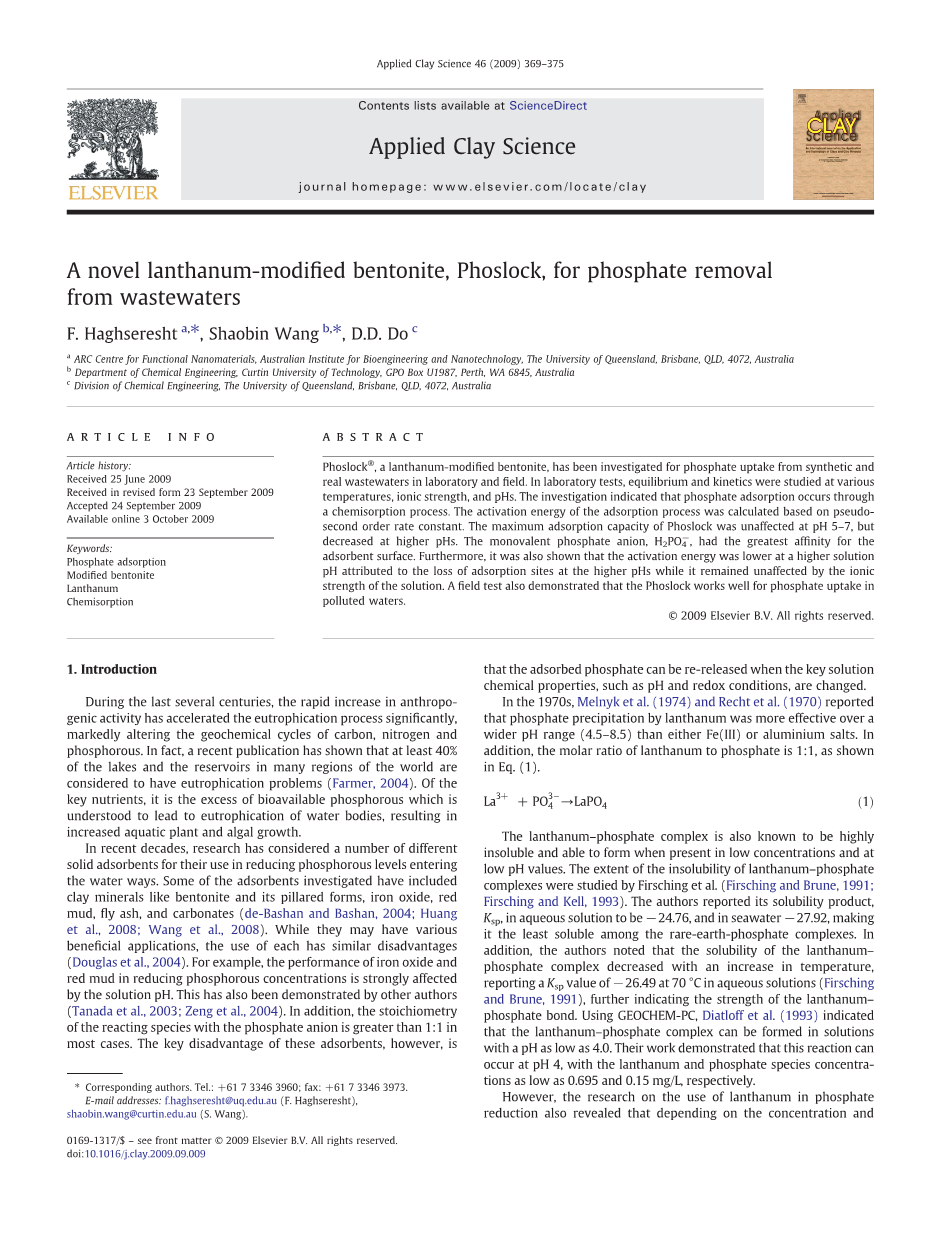 A novel lanthanum-modified bentonite,Phoslock, for phosphate removal from wastewaters