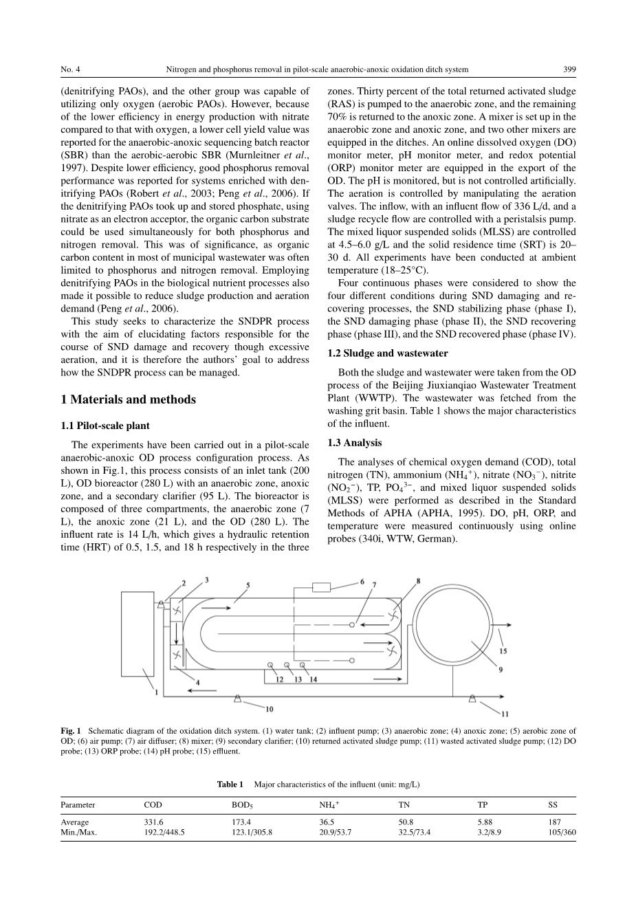 污泥和废水均取自北京九仙桥污水处理厂(污水处理厂)的OD流程。 废水从洗涤砂砾池中取出。 表1显示了流入物的主要特征。