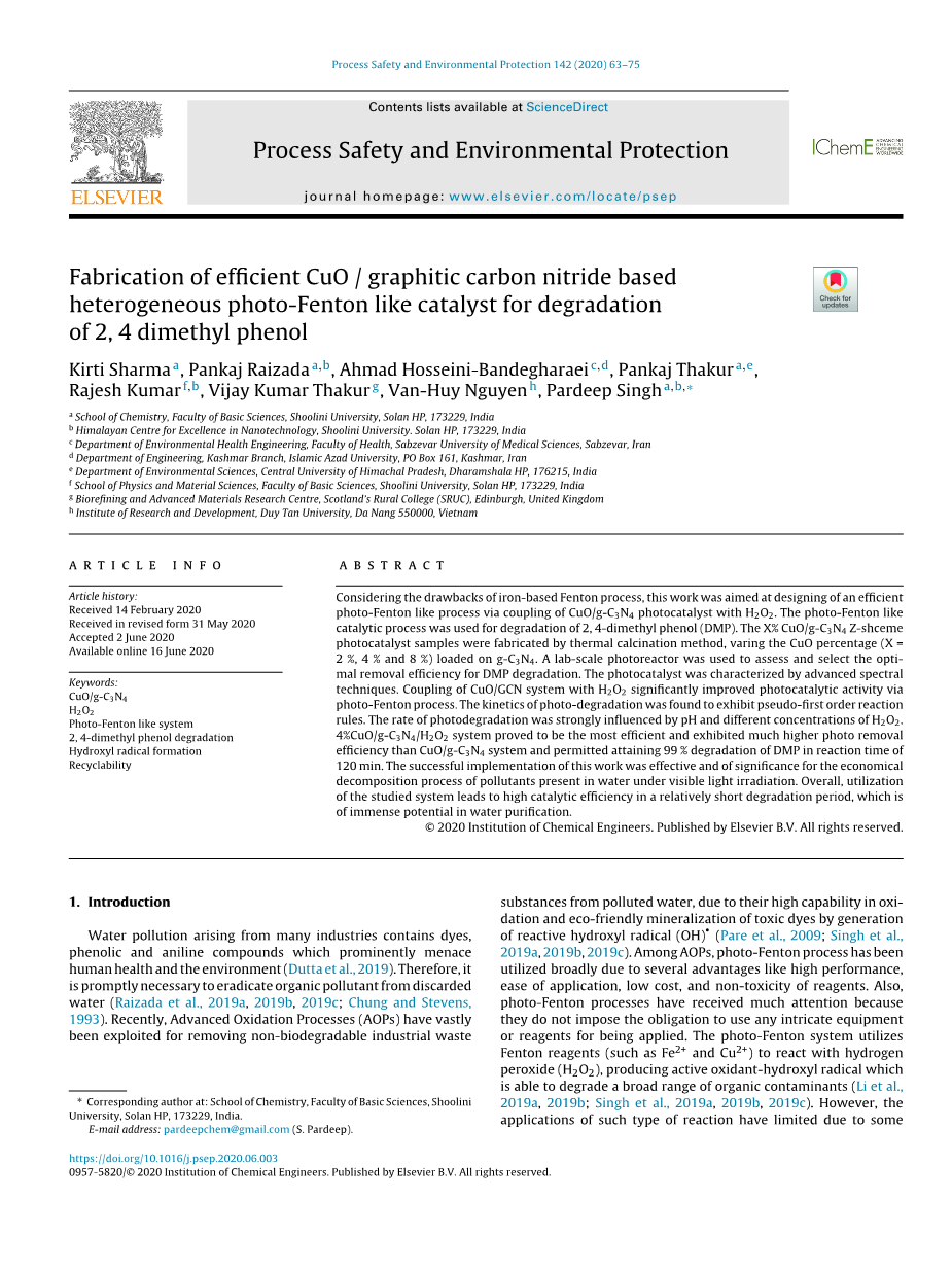 高效CuO |石墨氮化碳基多相光芬顿类催化剂降解2,4二甲基苯酚的制备外文翻译资料