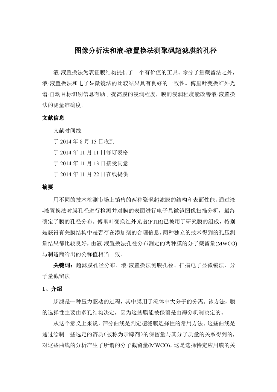 - 一种用原位粘结剂控制的抑制二次生长法制备的用于 储能装置的无缺陷MOF复合膜外文翻译资料