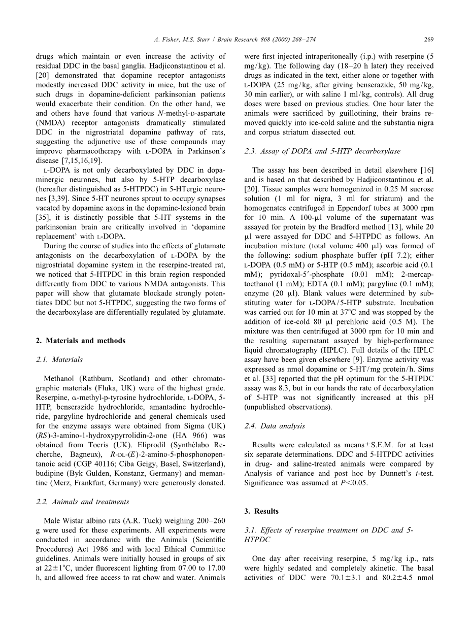 将金刚烷胺(10-7—7刚-4M)加入到孵育混合物中对DDC或5-HTPDC活性没有显着影响(数据未显示),表明上述NMDA拮抗剂的作用是通过受体而不是通过受体 直接影响酶。