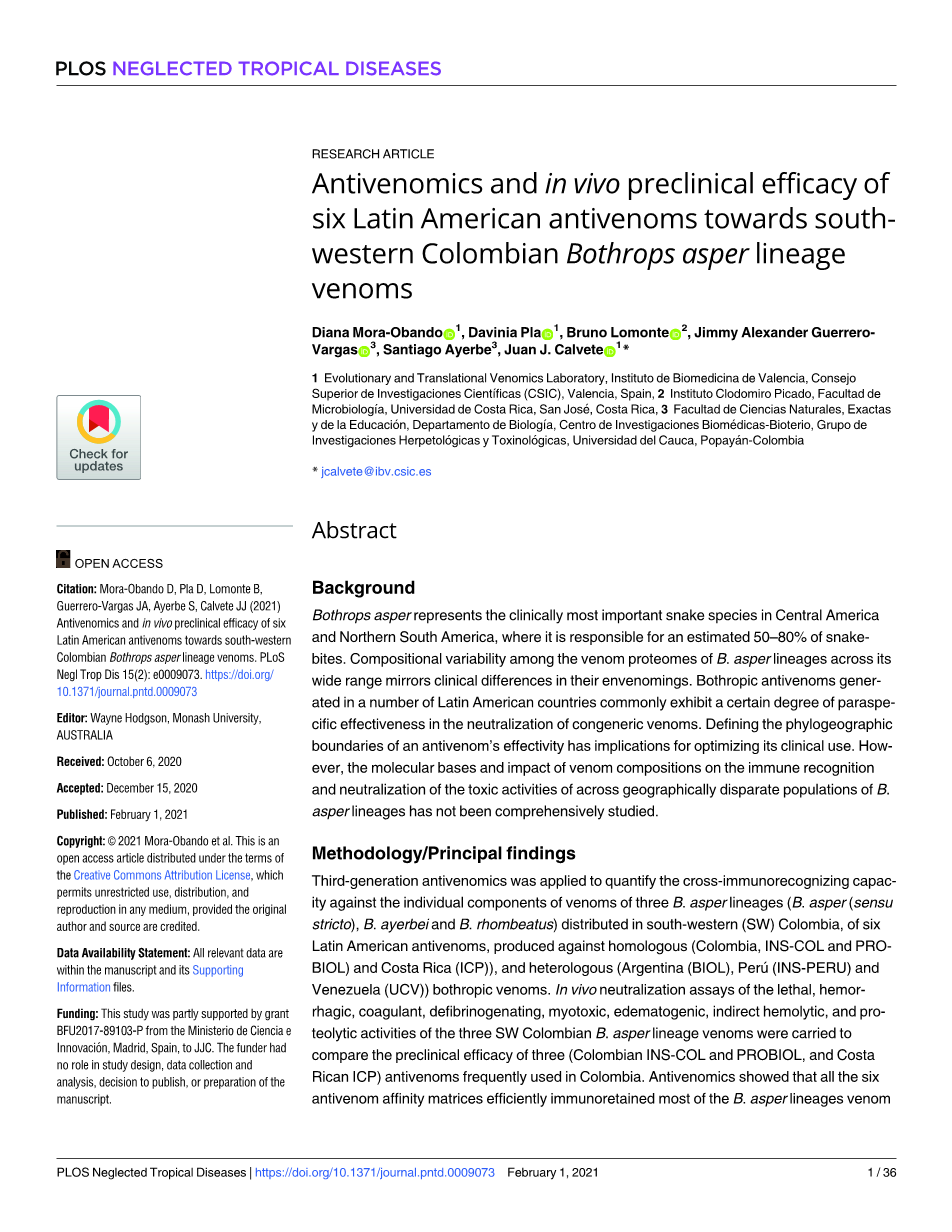 原文作者 Diana Mora-Obando1, Davinia Pla 1, Bruno Lomonte 2, Jimmy Alexander Guerrero-Vargas 3, Santiago Ayerbe 3, Juan J. Calvete1*
