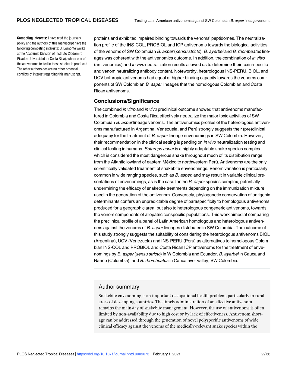 单位 1 Evolutionary and Translational Venomics Laboratory, Instituto de Biomedicina de Valencia, Consejo Superior de Investigaciones Cientıacute;ficas (CSIC), Valencia, Spain, 2 Instituto Clodomiro Picado, Facultad de Microbiologıaacute;, Universidad de Costa Rica, San Joseacute;, Costa Rica, 3 Facultad de Ciencias Naturales, Exactas y de la Educacioacute;n, Departamento de Biologıaacute;, Centro de Investigaciones Biomeacute;dicas- Bioterio, Grupo de Investigaciones Herpetoloacute;gicas y Toxinoloacute;gicas, Universidad del Cauca, Popayaacute;n-Colombia