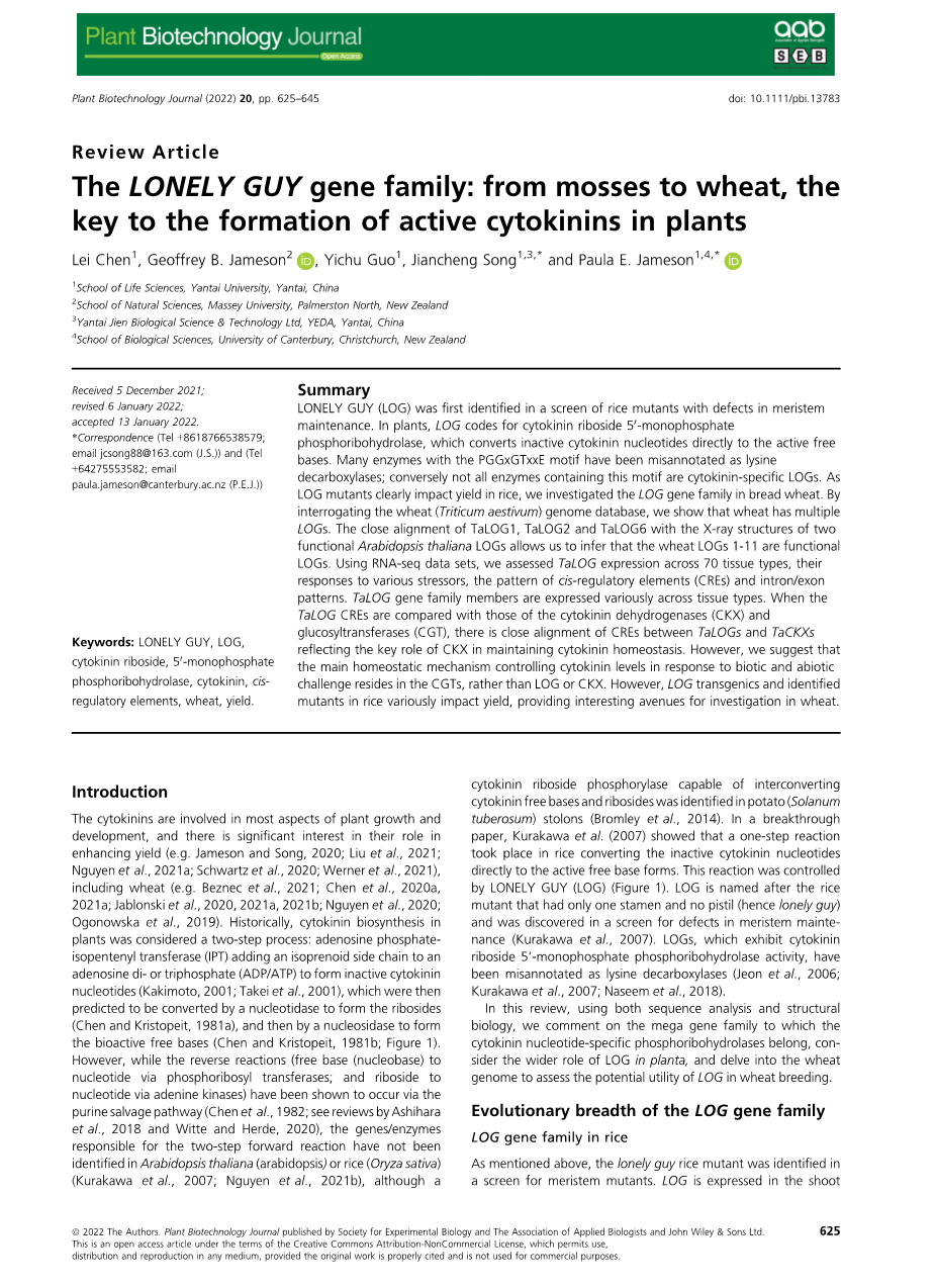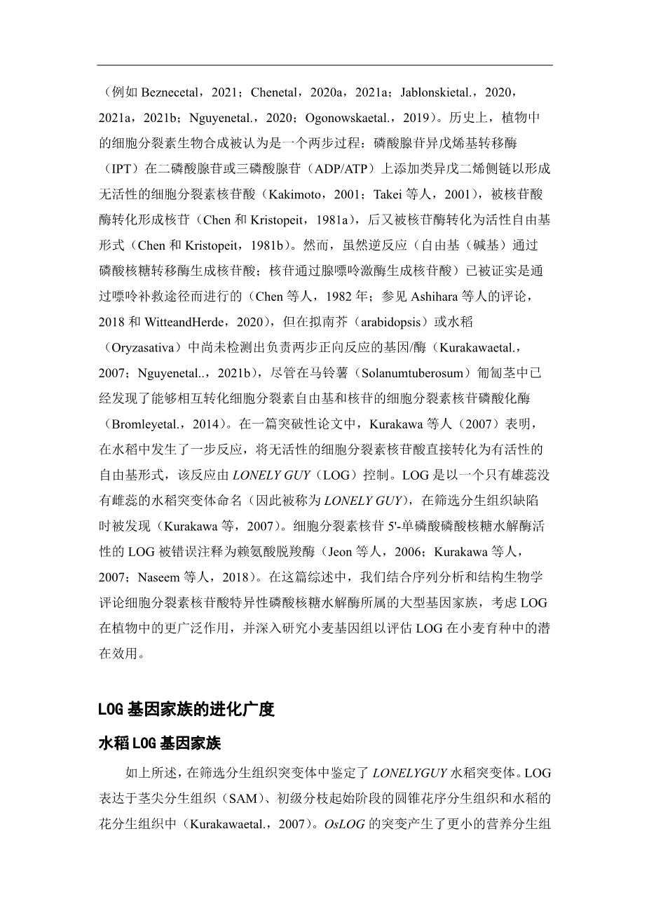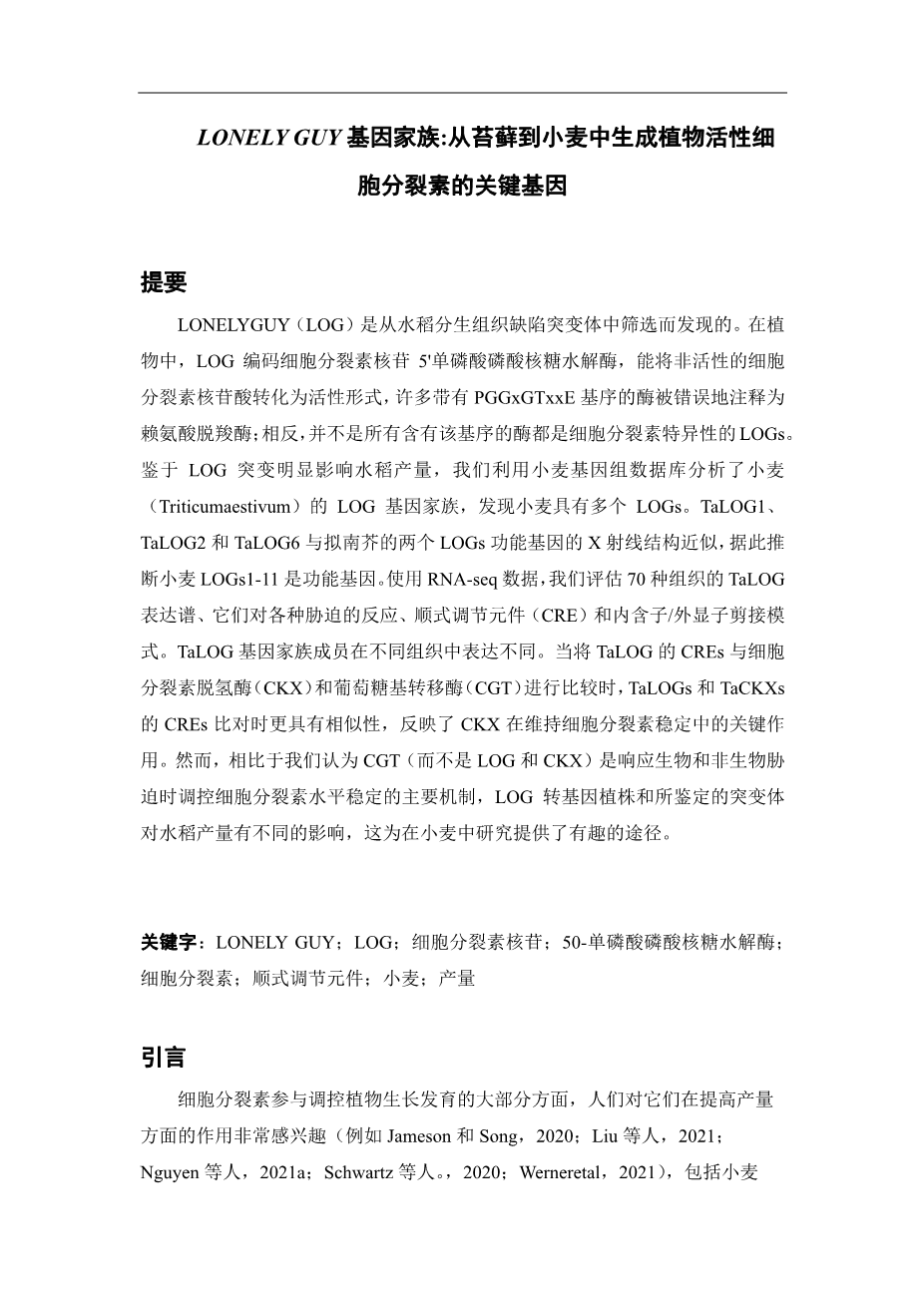 - LONELYGUY基因家族:从苔藓到小麦中生成植物活性细胞分裂素的关键基因外文翻译资料