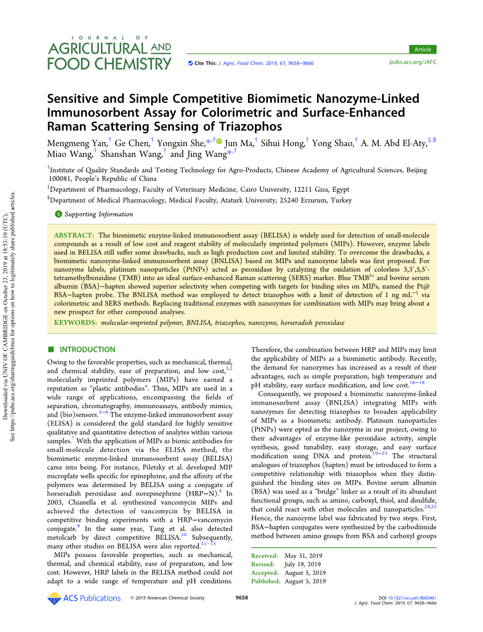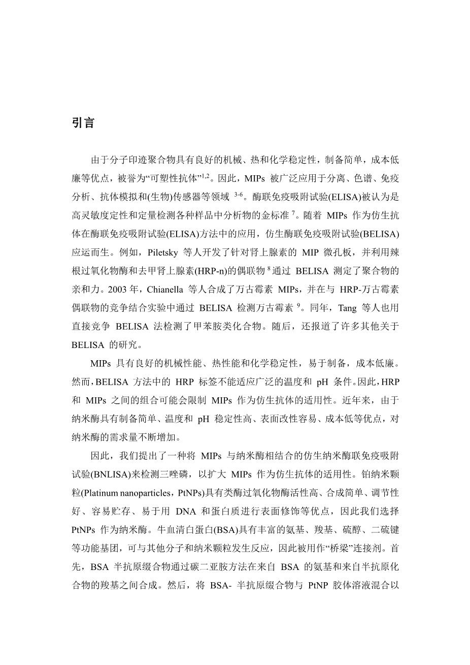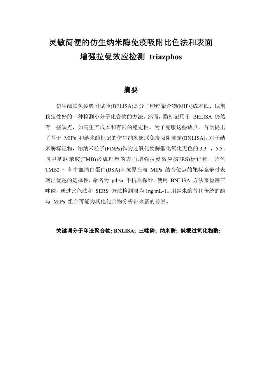 - 灵敏简便的仿生纳米酶免疫吸附比色法和表面增强拉曼效应检测 triazphos外文翻译资料
