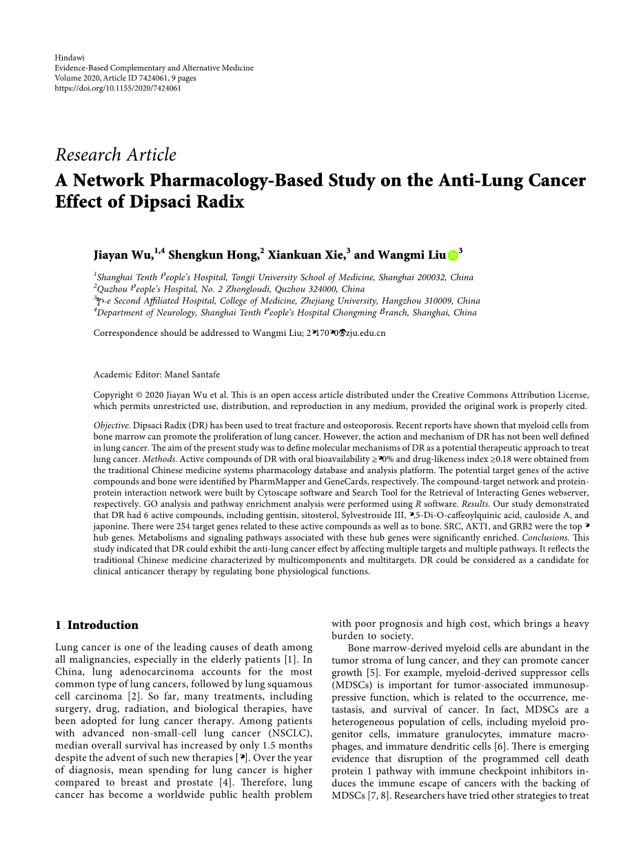 基于网络药理学的水仙抗肺癌作用研究外文翻译资料