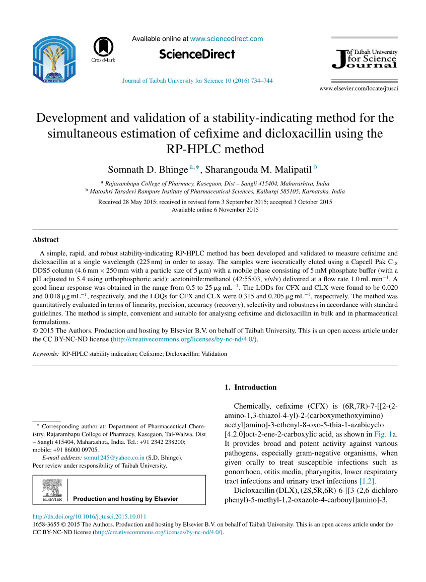 ScienceDirect发展和验证稳定性指示方法:使用RP-HPLC方法同时评价头孢克肟和双氯西林质量