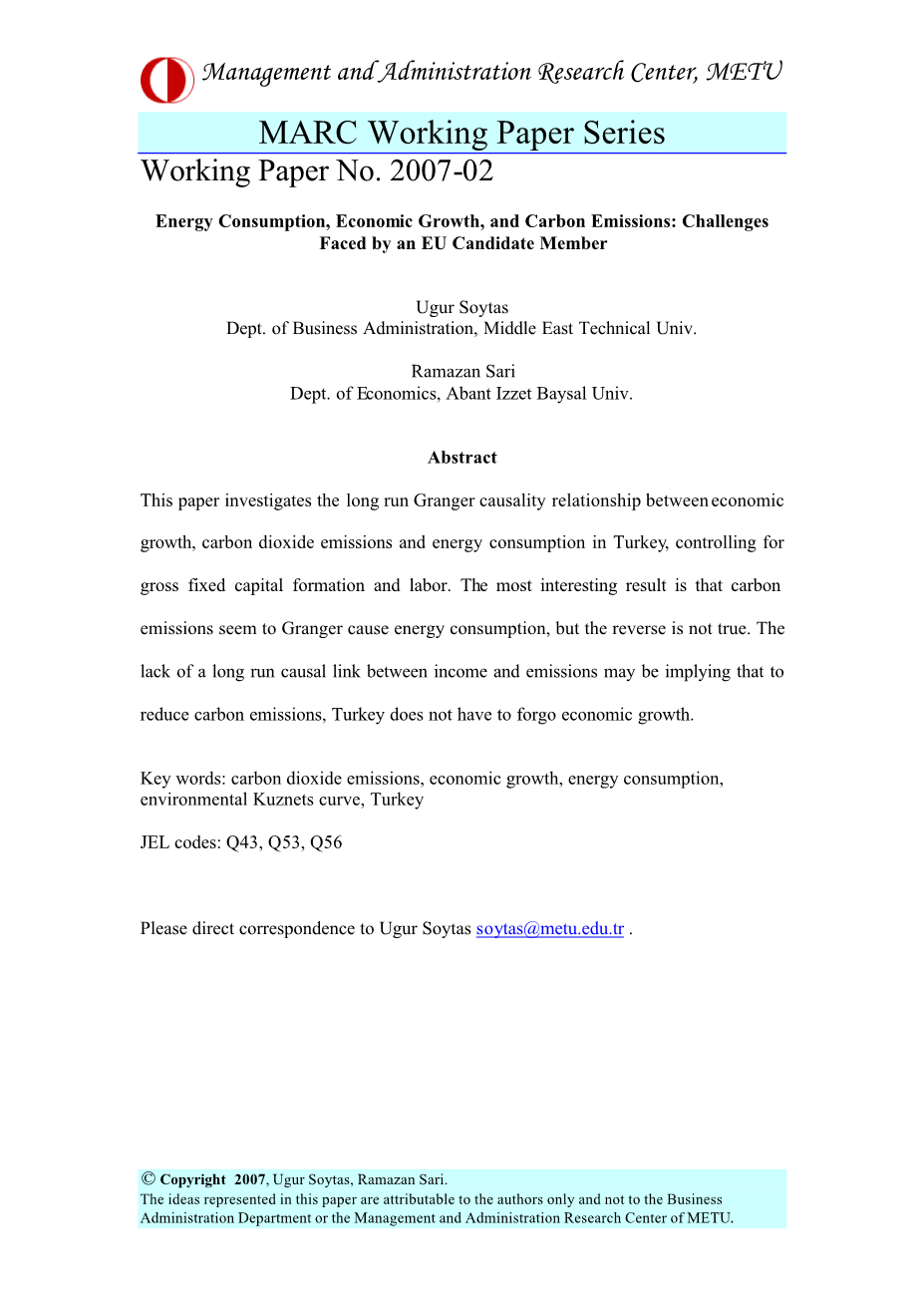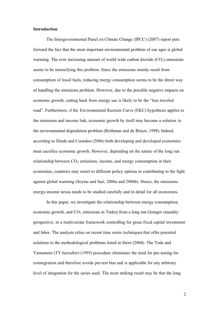 在本文中,我们调查了土耳其的能源消耗,经济增长和二氧化碳排放量之间的关系,从长期的格兰杰因果关系角度出发,在控制总固定资本投资和劳动力的多变量框架下。分析依赖于最近的时间序列技术,它为斯特恩(2004)中列出的方法问题提供了潜在的解决方案。 Toda和Yamamoto(TY)(1995年)程序消除了对协整的预测试的需要,因此避免了预测试偏差,并适用于所使用序列的任意集成度。最引人注目的结果可能就是,那么长运行格兰杰因果关系从土耳其的二氧化碳排放量转化为能源消耗量。也就是说,排放改善了土耳其的能源消耗预测,但反之亦然。这可能对土耳其产生重要的政策影响。我们首先选择土耳其作为案例研究,因为它是一个新兴经济体和欧盟(EU)正式成员国的候选国。土耳其需要调整其基础设施,经济和政府政策(包括环境,能源和增长政策),以使其符合欧盟的要求。其次,2000 - 2004年温室气体排放量增加72.6%,土耳其是世界上排放增长最快的国家(UNFCCC,2006),尽管她的人均排放量和人均国内生产总值是附件1中最低的国家之一京都议定书“。第三,我们要考察土耳其对排放限制对经济的负面影响是否合理,因为这是该国尚未批准该协议的主要原因。随着土耳其经济的增长,能源安全的压力也在增加。