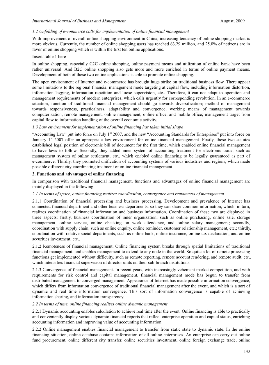 根据中国互联网信息中心的统计数据,截至2008年6月底,中国网民人数已达2.53亿,互联网普及率达到19.1%,网络购物者达到6329万人。 互联网和电子商务的大力发展给企业的财务管理带来了巨大的冲击。 针对资本流动的原有财务管理模式不能适应现代企业的经营管理要求,迫切需要相应的革命。 二十一世纪初,网络融资的提出和展开,引入了基于电子商务的金融管理的全新模式,成为金融研究领域的热点。