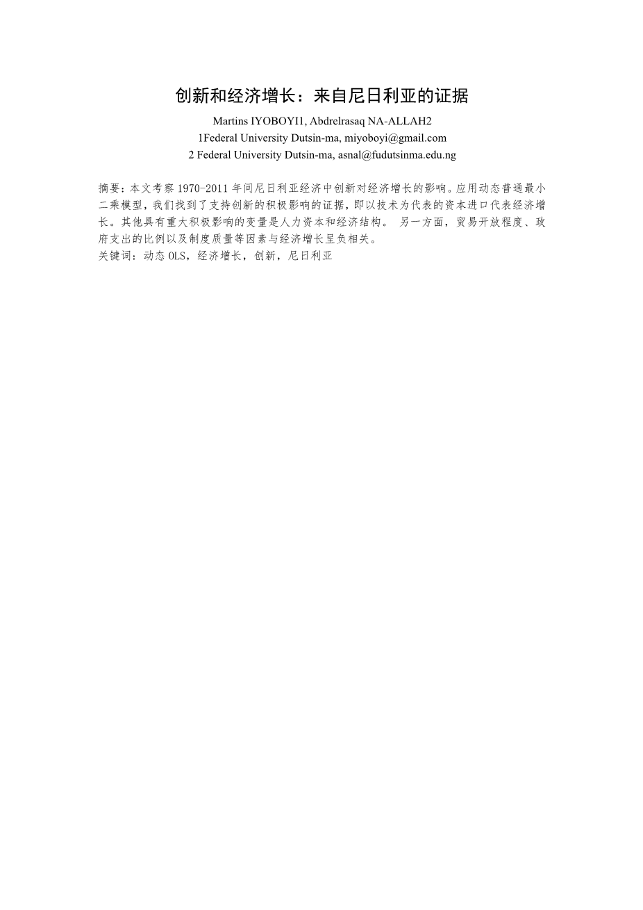 创新和经济增长:来自尼日利亚的证据外文翻译资料 2023-02-18 21:38:17 英语原文共 12 页,剩余内容已隐藏,支付完成后下载完整资料 英语译文共 12 页,剩余内容已隐藏,支付完成后下载完整资料 资料编号:[20108],资料为PDF文档或Word文档,PDF文档可免费转换为Word 您需要先支付 30元 才能查看全部内容!立即支付 发小红书推广免费获取该资料资格。点击链接进入获取推广文案即可: Ai一键组稿 | 降AI率 | 降重复率 | 论文一键排版 PREVIOUS NEXT 您可能感兴趣的文章 环境责任保险的协同机制与风险管理研究文献综述 贸易战背景下的汇率变动及汇率政策研究文献综述 基于ARMA-GARCH模型的投资者情绪与中国股票市场平均市盈率互动关系研究文献综述 金融发展对居民消费的影响文献综述 我国农村商业银行信贷风险影响因素分析——以江苏省为例文献综述 互联网金融对商业银行盈利能力的影响分析文献综述 中国外汇储备变动对货币供给的影响研究文献综述 中国国债期货期现套利研究文献综述 商业银行贷款业务风险测度与防范研究文献综述 p2p网贷借款利率影响因素的实证研究开题报告