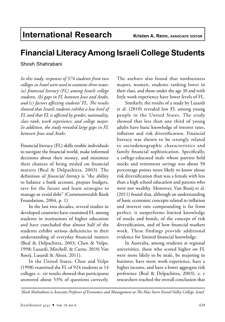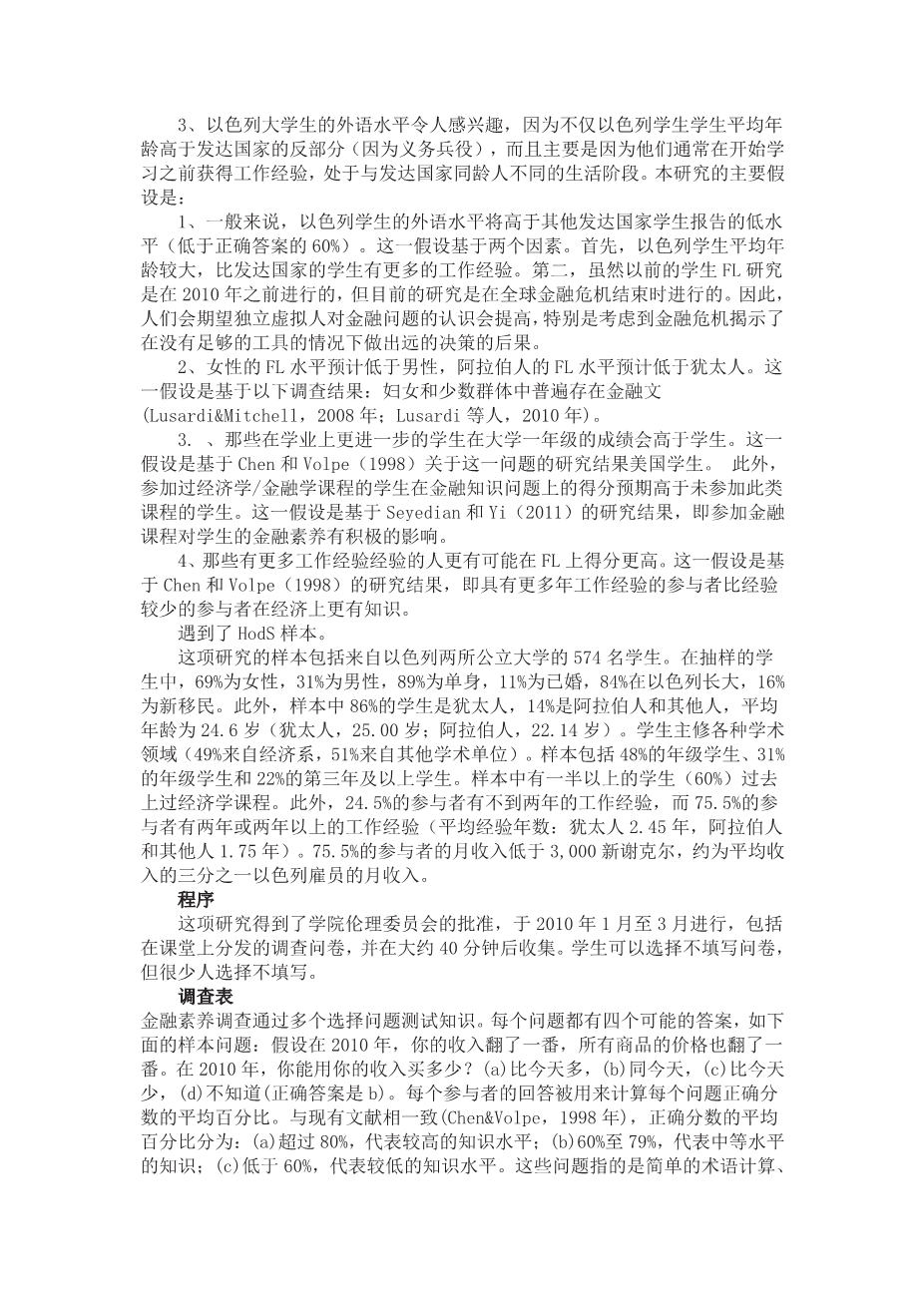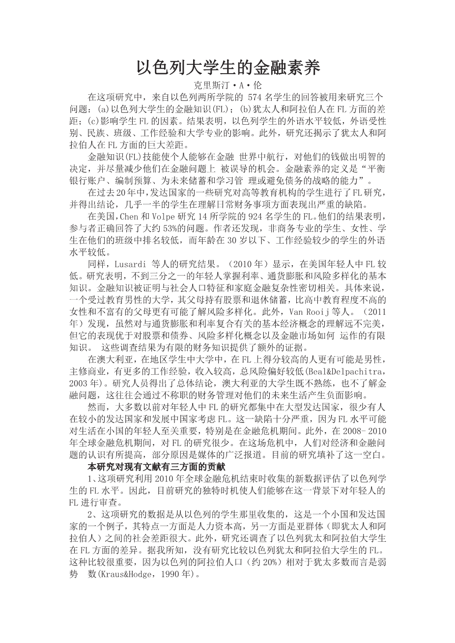 以色列大学生的金融素养外文翻译资料 2023-02-26 19:14:47 英语原文共 9 页,剩余内容已隐藏,支付完成后下载完整资料 英语译文共 5 页,剩余内容已隐藏,支付完成后下载完整资料 资料编号:[410411],资料为PDF文档或Word文档,PDF文档可免费转换为Word 您需要先支付 30元 才能查看全部内容!立即支付 发小红书推广免费获取该资料资格。点击链接进入获取推广文案即可: Ai一键组稿 | 降AI率 | 降重复率 | 论文一键排版 PREVIOUS NEXT 您可能感兴趣的文章 环境责任保险的协同机制与风险管理研究文献综述 贸易战背景下的汇率变动及汇率政策研究文献综述 基于ARMA-GARCH模型的投资者情绪与中国股票市场平均市盈率互动关系研究文献综述 金融发展对居民消费的影响文献综述 我国农村商业银行信贷风险影响因素分析——以江苏省为例文献综述 互联网金融对商业银行盈利能力的影响分析文献综述 中国外汇储备变动对货币供给的影响研究文献综述 中国国债期货期现套利研究文献综述 商业银行贷款业务风险测度与防范研究文献综述 p2p网贷借款利率影响因素的实证研究开题报告
