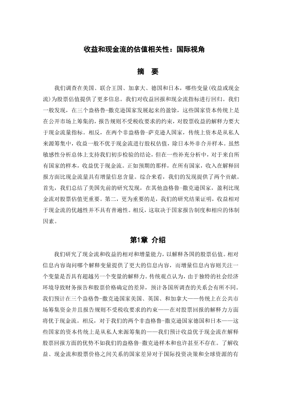 收益和现金流的估值相关性:国际视角外文翻译资料