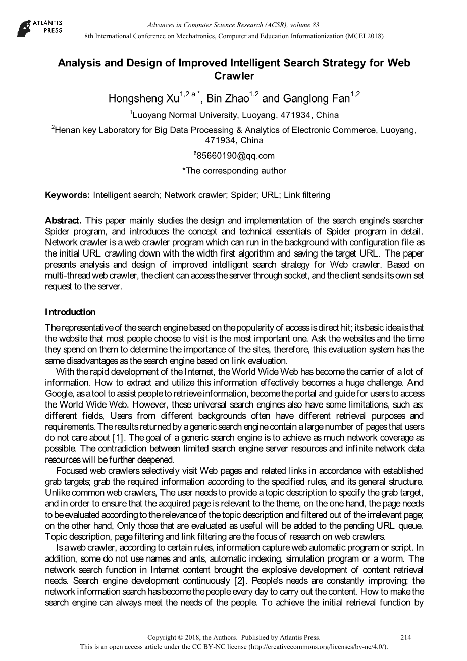 针对网络爬虫分析和设计改进的智能的搜索策略