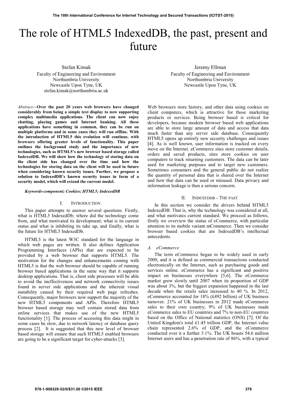 [1] Naseem, S.Z. Majeed, F. (2013) Extending HTML5 local storage to save more data; efficiently and in more structured way. Eighth International Digital Information Management (ICDIM)