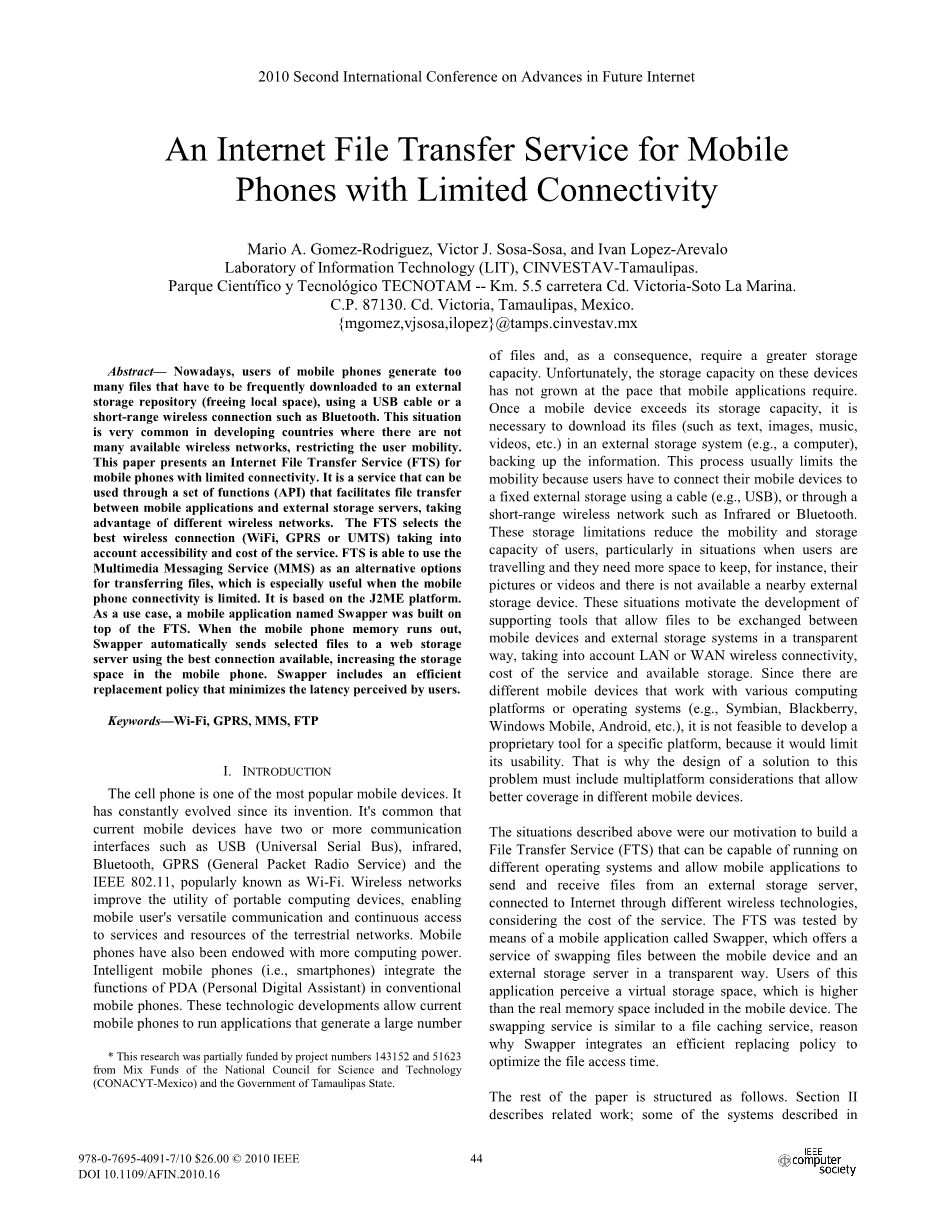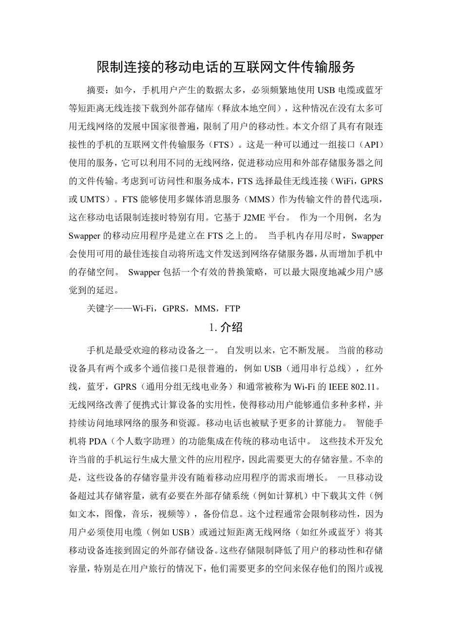 限制连接的移动电话的互联网文件传输服务外文翻译资料