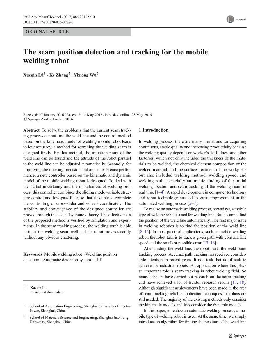 移动焊接机器人的焊缝位置检测与跟踪外文翻译资料