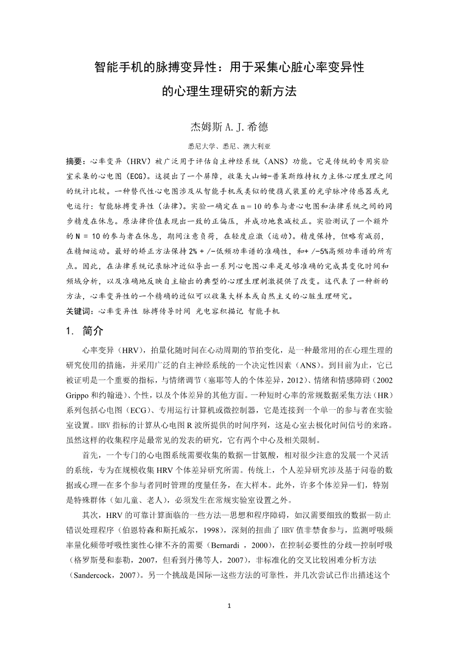 智能手机的脉搏变异性:用于采集心脏心率变异性的心理生理研究的新方法外文翻译资料 2023-03-01 11:17:17 英语原文共 8 页,剩余内容已隐藏,支付完成后下载完整资料 英语译文共 11 页,剩余内容已隐藏,支付完成后下载完整资料 资料编号:[29984],资料为PDF文档或Word文档,PDF文档可免费转换为Word 您需要先支付 30元 才能查看全部内容!立即支付 发小红书推广免费获取该资料资格。点击链接进入获取推广文案即可: Ai一键组稿 | 降AI率 | 降重复率 | 论文一键排版 PREVIOUS NEXT 您可能感兴趣的文章 基于B/S架构的高校就业信息管理系统的设计与实现开题报告 基于scrapy爬虫技术的电商平台数据分析系统文献综述 基于热点查询的地理栅格数据分析算法研究文献综述 交通数据中的数据优化文献综述 气象云图数据的解析与展示组件的开发文献综述 圆形图章的配准与鉴别研究文献综述 基于SSM框架的博客系统文献综述 基于Python的药用菊花指标预测分析文献综述 塔吊脚手架网设计与开发(后台管理系统)文献综述 高校大学生创新能力培养大数据分析与平台设计文献综述