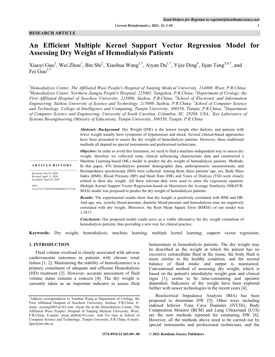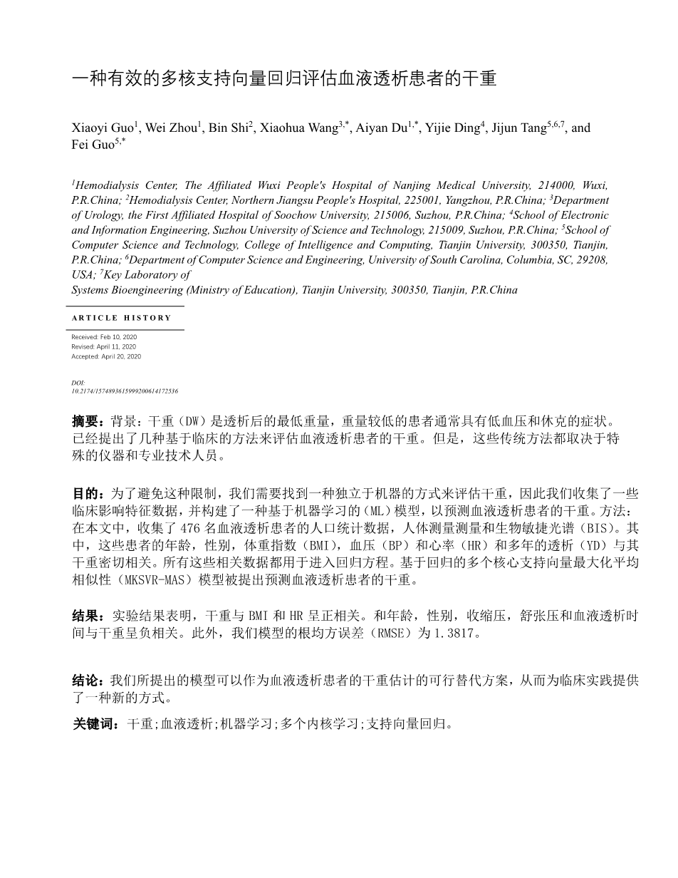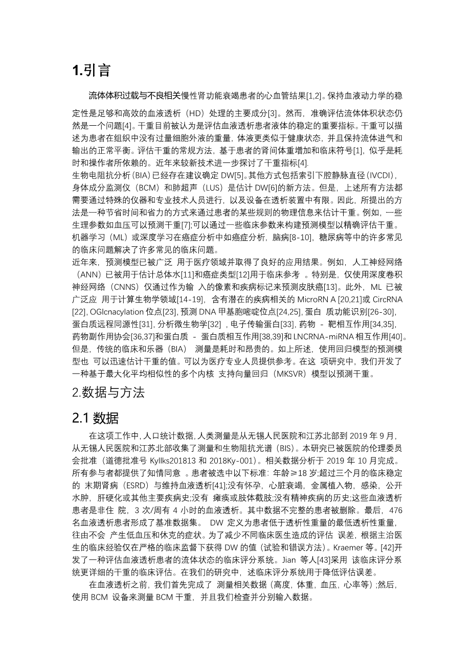 一种有效的多核支持向量回归评估血液透析患者的干重外文翻译资料 2023-03-04 10:54:21 英语原文共 10 页,剩余内容已隐藏,支付完成后下载完整资料 英语译文共 15 页,剩余内容已隐藏,支付完成后下载完整资料 资料编号:[405265],资料为PDF文档或Word文档,PDF文档可免费转换为Word 您需要先支付 30元 才能查看全部内容!立即支付 发小红书推广免费获取该资料资格。点击链接进入获取推广文案即可: Ai一键组稿 | 降AI率 | 降重复率 | 论文一键排版 PREVIOUS NEXT 您可能感兴趣的文章 基于B/S架构的高校就业信息管理系统的设计与实现开题报告 基于scrapy爬虫技术的电商平台数据分析系统文献综述 基于热点查询的地理栅格数据分析算法研究文献综述 交通数据中的数据优化文献综述 气象云图数据的解析与展示组件的开发文献综述 圆形图章的配准与鉴别研究文献综述 基于SSM框架的博客系统文献综述 基于Python的药用菊花指标预测分析文献综述 塔吊脚手架网设计与开发(后台管理系统)文献综述 高校大学生创新能力培养大数据分析与平台设计文献综述