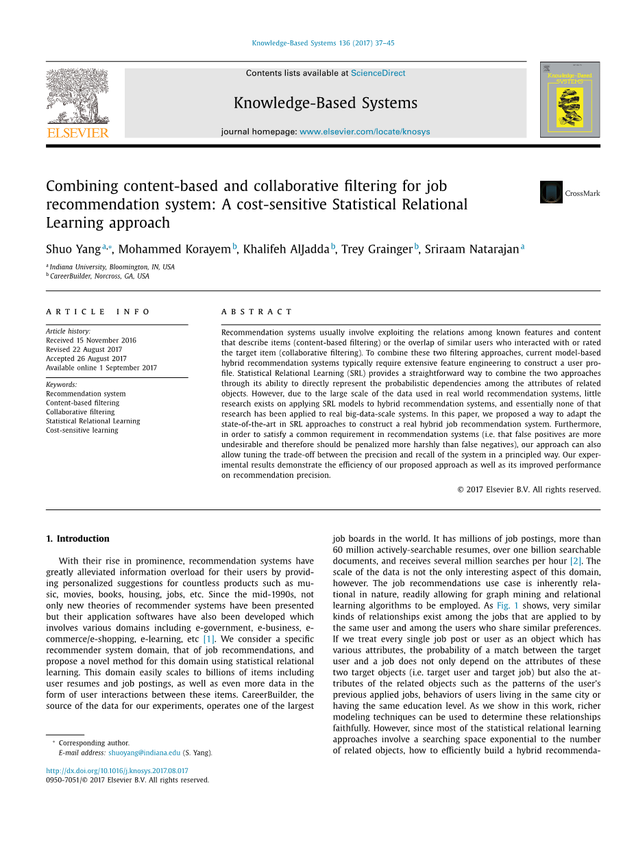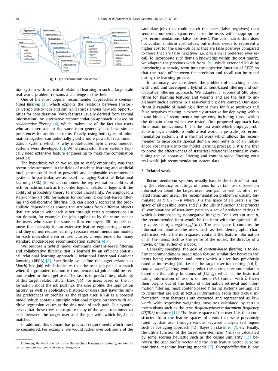 结合基于内容和协同过滤的工作推荐系统:一种成本敏感的统计关系学习方法