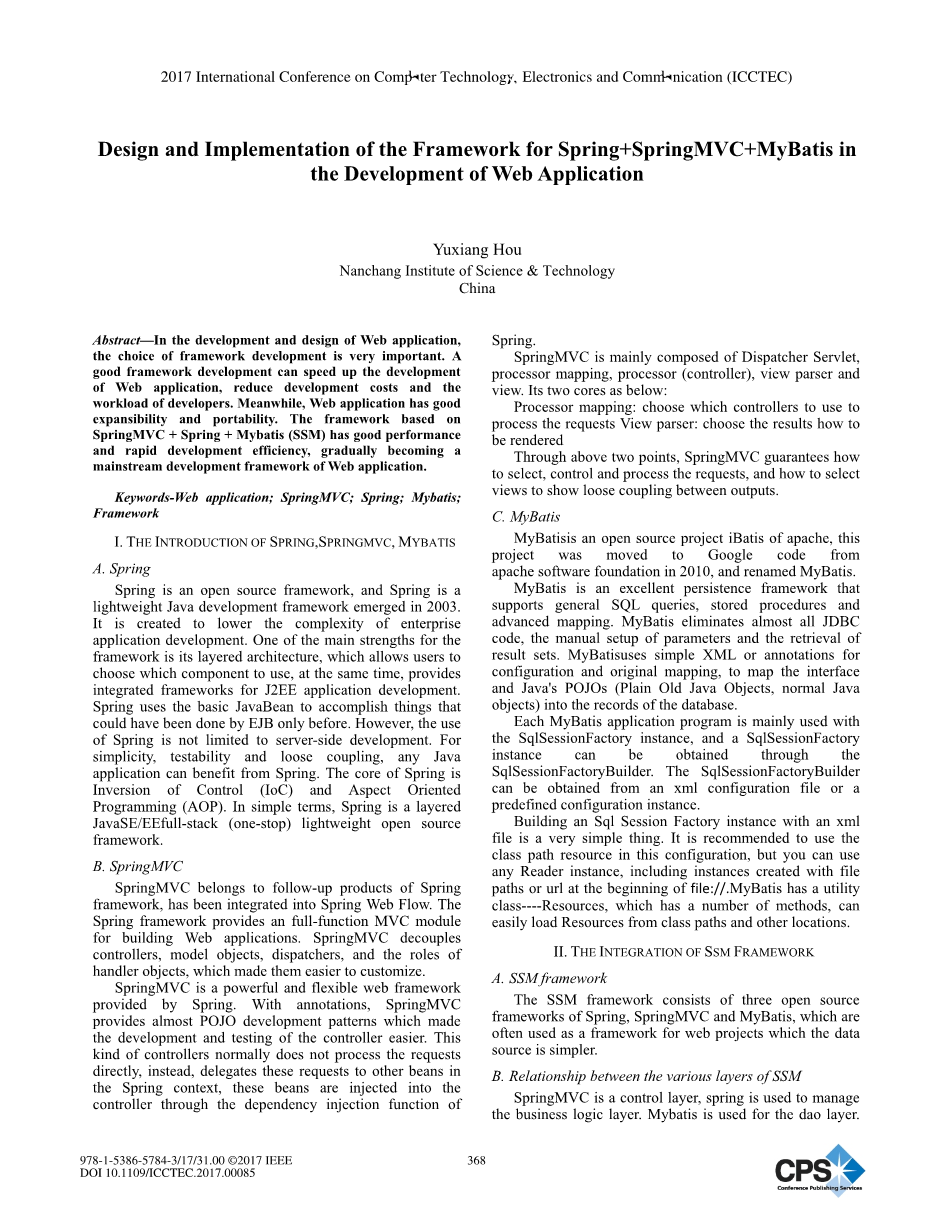 Web应用开发中Spring SpringMVC MyBatis框架的设计与实现外文翻译资料