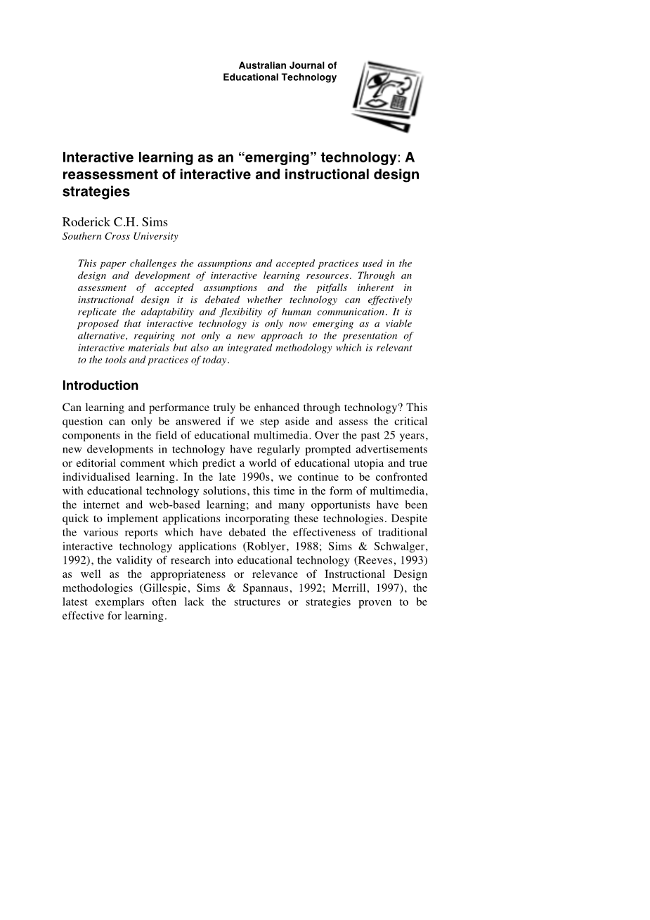 这一假设构成了大多数交互式培训技术的基础。然而,如果我们还没有揭示交互的真正功能(sim,1997) ,那么复制传统资源的尝试可能会被误导。事实上,选择辅导作为一种教学策略(最常见的一种)可能是错误的,因为技术可能不一定适合作为教学材料的呈现者。因此,今天的挑战之一,即仍然可以被认为是一种新兴技术,是评估向学习者提供教学材料的最佳方式,以及在何种程度上技术可能是最合适的。