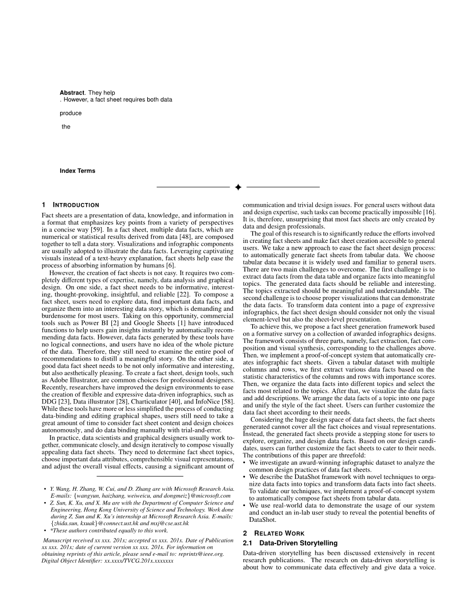 DigitalObjectIdentifier:xx.xxxx/TVCG.201x.xxxxxxx对于没有数据和设计专业知识的普通用户来说,这样的任务实际上是不可能的[16]. 因此,大多数事实表仅由数据和设计专业人士创建也就不足为奇了。