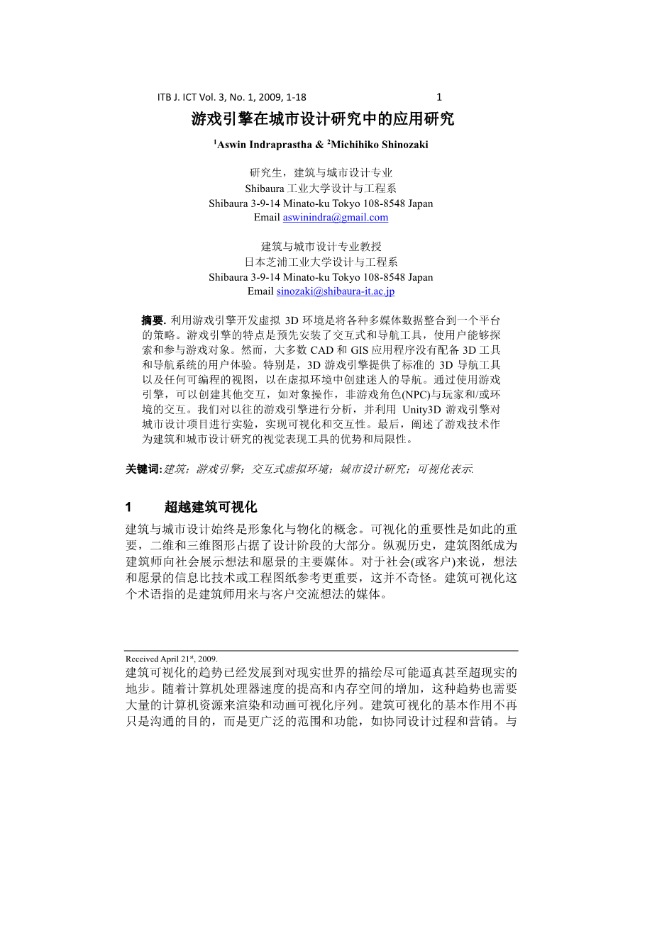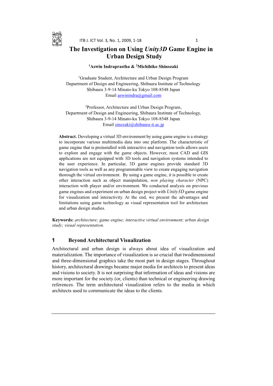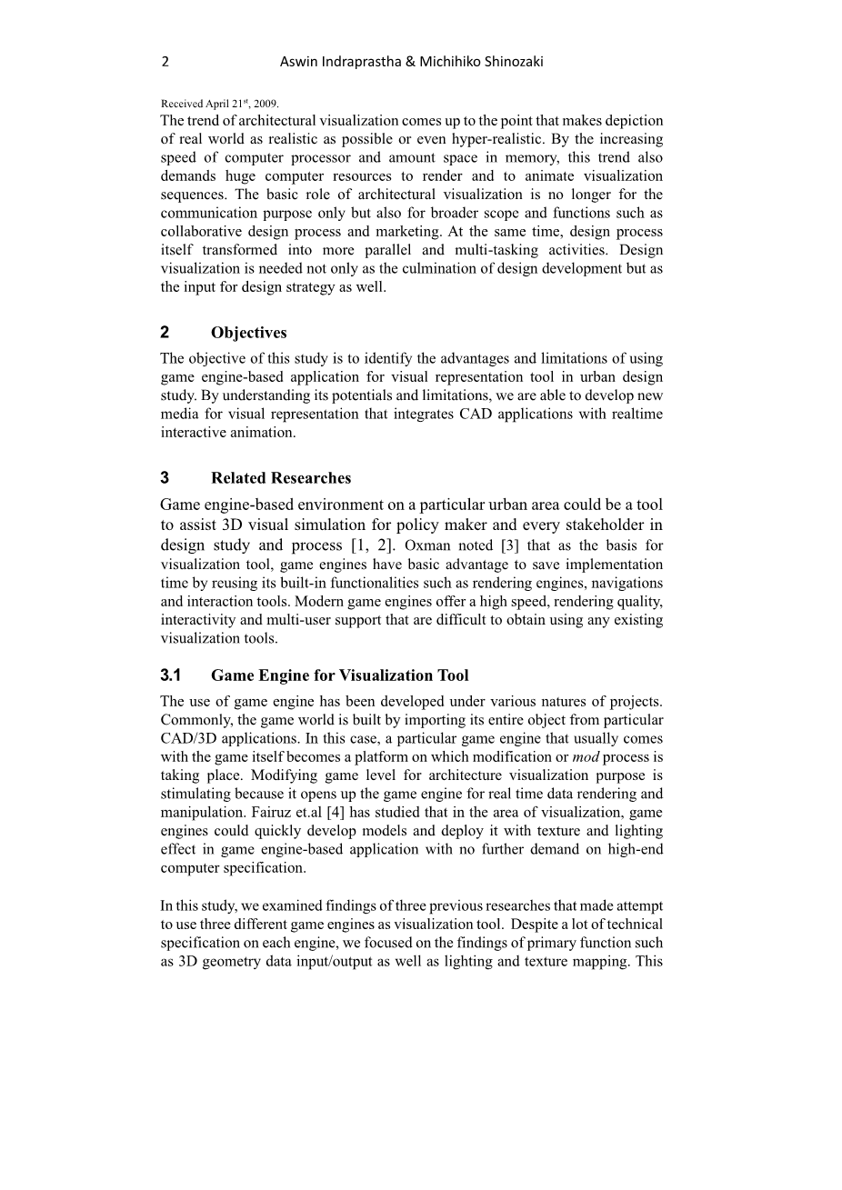 游戏引擎在城市设计研究中的应用研究外文翻译资料 2023-04-12 18:35:18 英语原文共 20 页,剩余内容已隐藏,支付完成后下载完整资料 英语译文共 19 页,剩余内容已隐藏,支付完成后下载完整资料 资料编号:[589783],资料为PDF文档或Word文档,PDF文档可免费转换为Word 您需要先支付 30元 才能查看全部内容!立即支付 发小红书推广免费获取该资料资格。点击链接进入获取推广文案即可: Ai一键组稿 | 降AI率 | 降重复率 | 论文一键排版 PREVIOUS NEXT 您可能感兴趣的文章 基于B/S架构的高校就业信息管理系统的设计与实现开题报告 基于scrapy爬虫技术的电商平台数据分析系统文献综述 基于热点查询的地理栅格数据分析算法研究文献综述 交通数据中的数据优化文献综述 气象云图数据的解析与展示组件的开发文献综述 圆形图章的配准与鉴别研究文献综述 基于SSM框架的博客系统文献综述 基于Python的药用菊花指标预测分析文献综述 塔吊脚手架网设计与开发(后台管理系统)文献综述 高校大学生创新能力培养大数据分析与平台设计文献综述