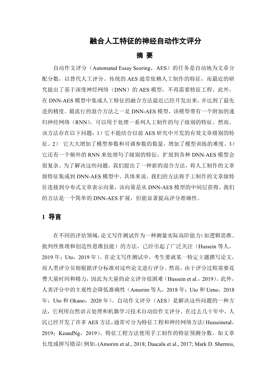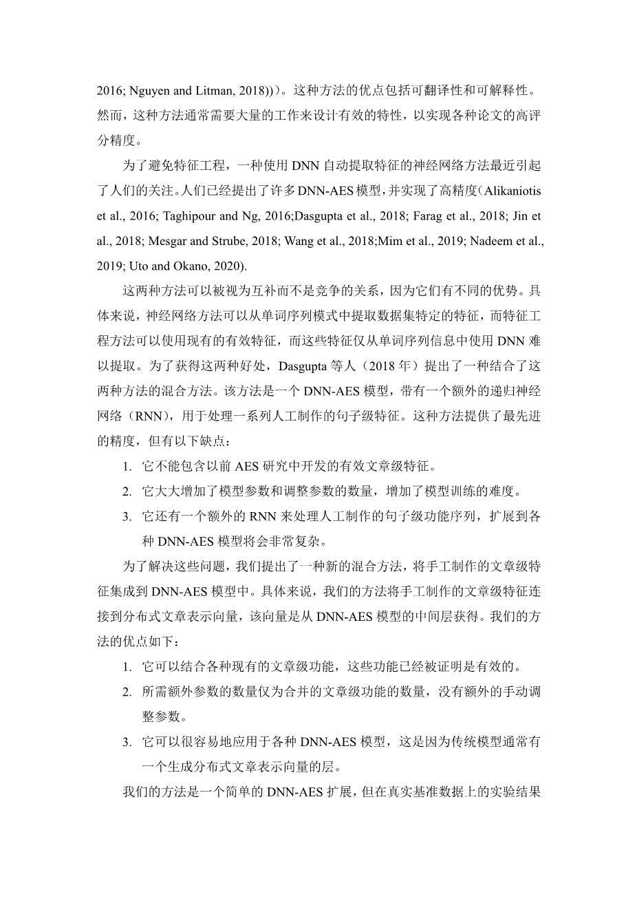 融合人工特征的神经自动作文评分外文翻译资料 2023-04-12 18:37:17 英语原文共 12 页,剩余内容已隐藏,支付完成后下载完整资料 英语译文共 15 页,剩余内容已隐藏,支付完成后下载完整资料 资料编号:[589766],资料为PDF文档或Word文档,PDF文档可免费转换为Word 您需要先支付 30元 才能查看全部内容!立即支付 发小红书推广免费获取该资料资格。点击链接进入获取推广文案即可: Ai一键组稿 | 降AI率 | 降重复率 | 论文一键排版 PREVIOUS NEXT 您可能感兴趣的文章 基于B/S架构的高校就业信息管理系统的设计与实现开题报告 基于scrapy爬虫技术的电商平台数据分析系统文献综述 基于热点查询的地理栅格数据分析算法研究文献综述 交通数据中的数据优化文献综述 气象云图数据的解析与展示组件的开发文献综述 圆形图章的配准与鉴别研究文献综述 基于SSM框架的博客系统文献综述 基于Python的药用菊花指标预测分析文献综述 塔吊脚手架网设计与开发(后台管理系统)文献综述 高校大学生创新能力培养大数据分析与平台设计文献综述