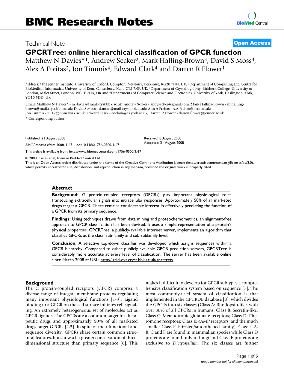 电子邮件: Matthew N Davies* - m.davies@mail.cryst.bbk.ac.uk; Andrew Secker - andysecker@gmail.com; Mark Halling-Brown - m.hallingbrown@mail.cryst.bbk.ac.uk; David S Moss - d.moss@mail.cryst.bbk.ac.uk; Alex A Freitas - A.A.Freitas@kent.ac.uk;