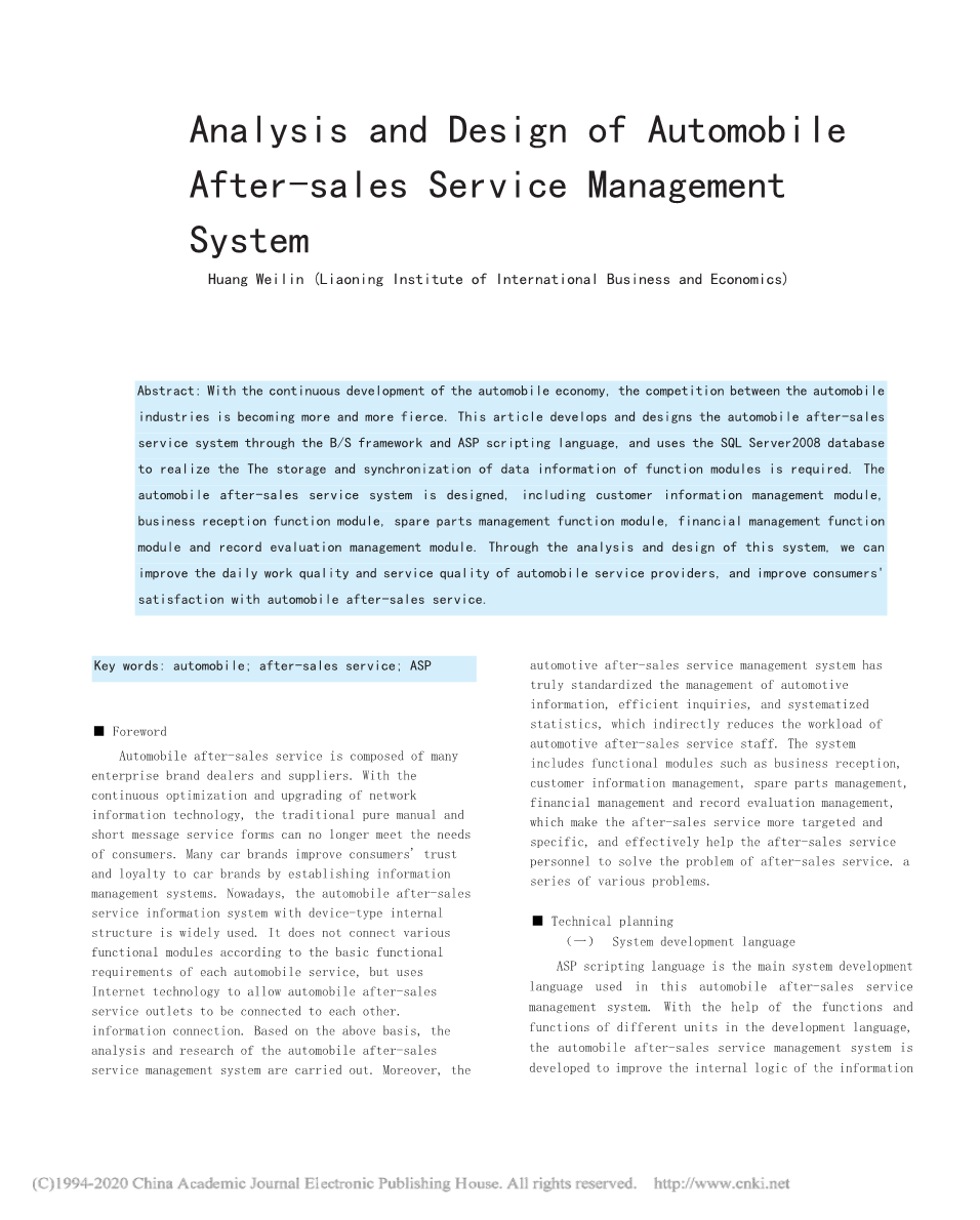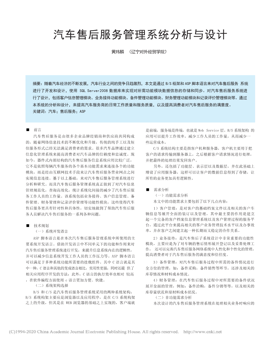 汽车售后服务管理系统分析与设计外文翻译资料 2023-06-27 08:55:16 英语原文共 6 页,剩余内容已隐藏,支付完成后下载完整资料 英语译文共 3 页,剩余内容已隐藏,支付完成后下载完整资料 资料编号:[603289],资料为PDF文档或Word文档,PDF文档可免费转换为Word 您需要先支付 30元 才能查看全部内容!立即支付 发小红书推广免费获取该资料资格。点击链接进入获取推广文案即可: Ai一键组稿 | 降AI率 | 降重复率 | 论文一键排版 PREVIOUS NEXT 您可能感兴趣的文章 基于B/S架构的高校就业信息管理系统的设计与实现开题报告 基于scrapy爬虫技术的电商平台数据分析系统文献综述 基于热点查询的地理栅格数据分析算法研究文献综述 交通数据中的数据优化文献综述 气象云图数据的解析与展示组件的开发文献综述 圆形图章的配准与鉴别研究文献综述 基于SSM框架的博客系统文献综述 基于Python的药用菊花指标预测分析文献综述 塔吊脚手架网设计与开发(后台管理系统)文献综述 高校大学生创新能力培养大数据分析与平台设计文献综述