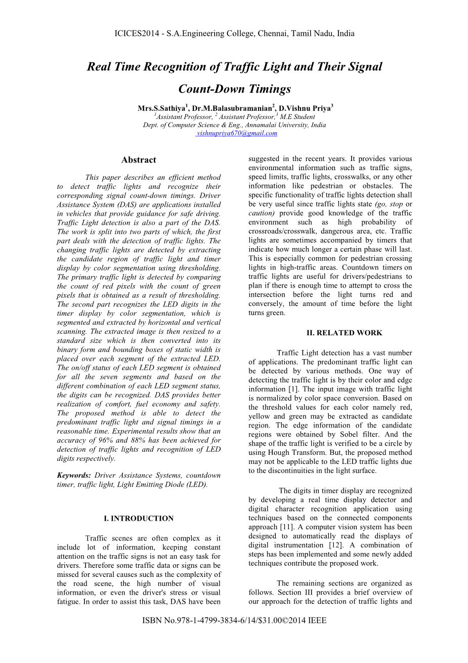 一些交通灯还包括LED显示计数计时器。交通灯上的这些计时器对于司机和行人来说是很有用的,如果有足够的时间试图在光线变红之前穿过十字路口,反之,绿灯亮之前的时间就会变大。显示中的数字被分割并识别以提醒驱动程序。结果发现,LED显示器只用于显示信号的时间在世界各地。因此,本文给出了一种识别七段LED数字的技术。