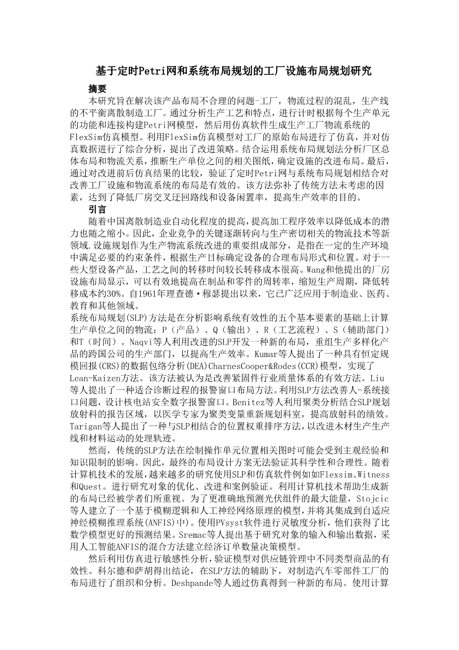 基于定时Petri网和系统布局规划的工厂设施布局规划研究外文翻译资料