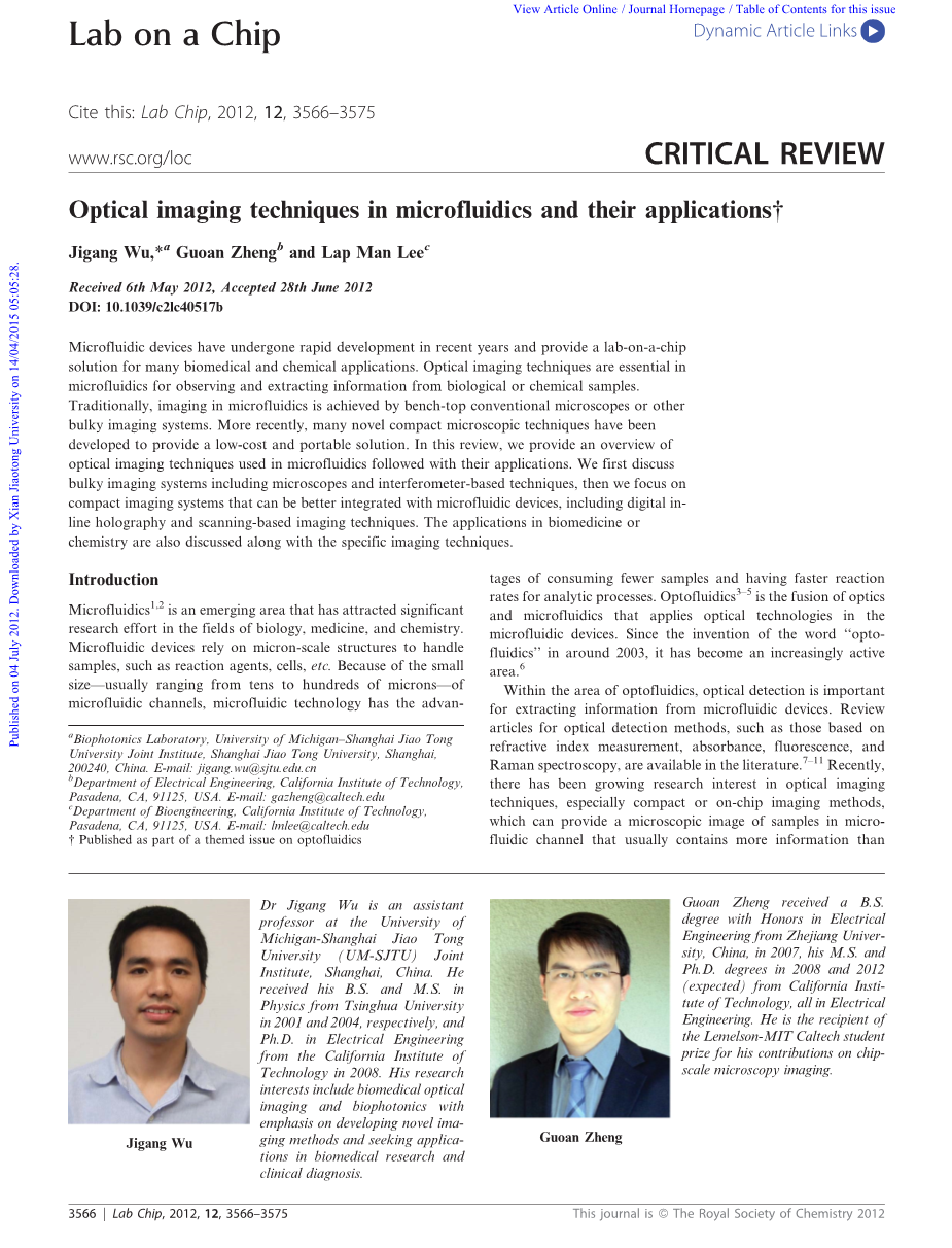 在光流体领域,光学检测对于从微流体装置提取信息是重要的。 文献中提供了光学检测方法的评论文章,例如基于折射率测量,吸光度,荧光和拉曼光谱的那些。最近,对光学成像技术的研究兴趣日益增长,特别是紧凑型或芯片成像方法,其可以提供微流体通道中的样品的微观图像,其通常包含比其他检测方法更多的信息。 在这次审查中,我们将提供一个光学成像方法的调查,可以应用于微流体设备中的检测。 我们还将讨论这些成像方法的潜在应用。