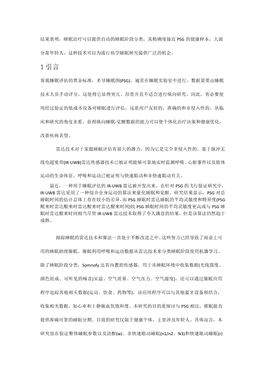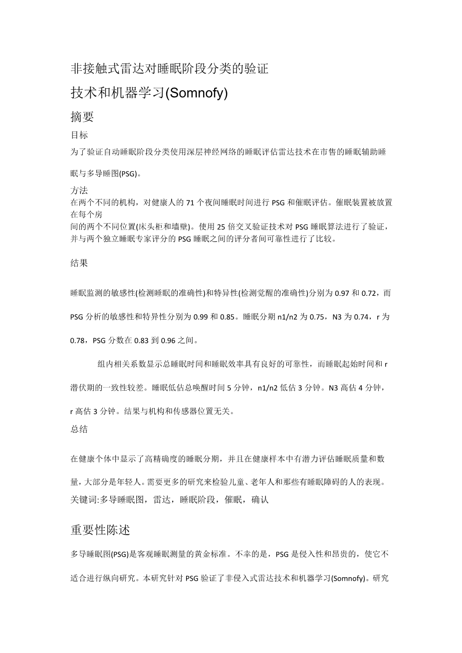 非接触式雷达对睡眠阶段分类的验证外文翻译资料