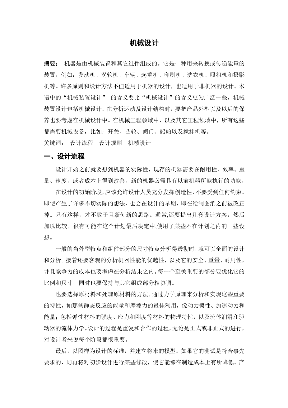Abstract:A machine is a combination of mechanisms and other components which transforms transmits. Examples are engines, turbines, vehicles, hoists, printing presses, washing machines, and movie cameras. Many of the principles and methods of design that apply to machines also apply to manufactured articles that are not true machines. The term 'mechanical design' is used in a broader sense than 'machine design' to include their design. The motion and structural aspects and the provisions for retention and enclosure are considerations in mechanical design. Applications occur in the field of mechanical engineering, and in other engineering fields as well, all of which require mechanical devices, such as switches, cams, valves, vessels, and mixers.