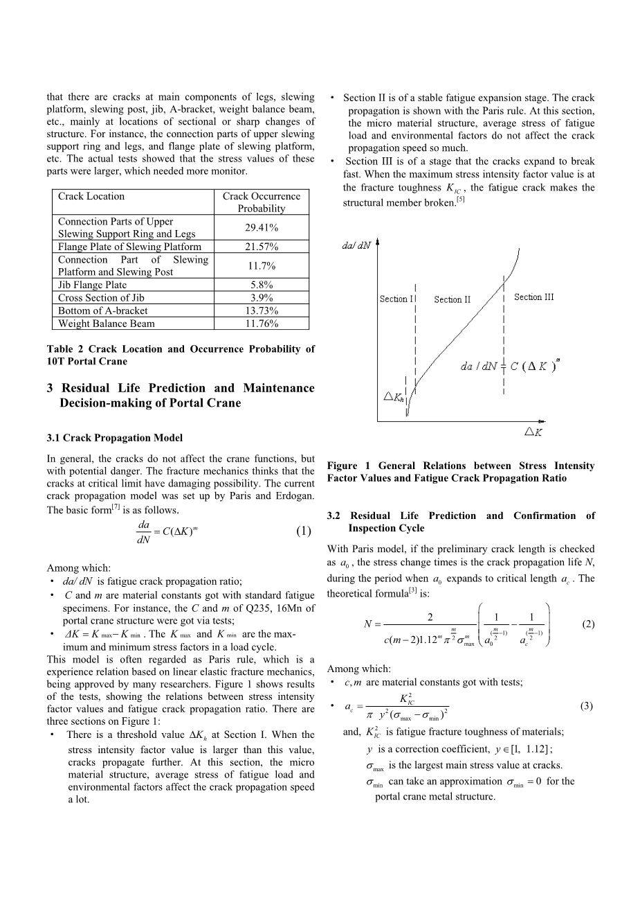 1):随着断裂力学的发展,适用的工程公式必须进一步校正,以预测门式起重机金属结构的裂纹扩展寿命,使其更准确。