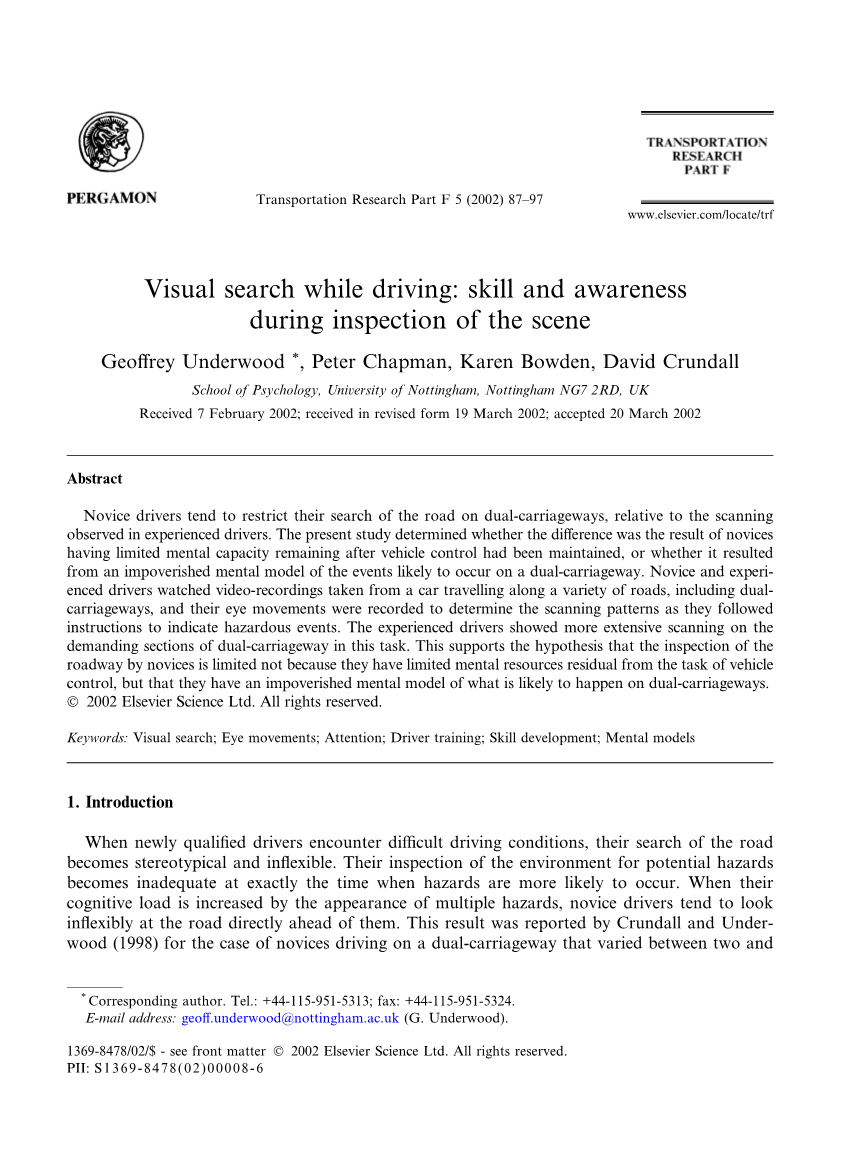 Geoffrey Underwood *, Peter Chapman, Karen Bowden, David Crundall