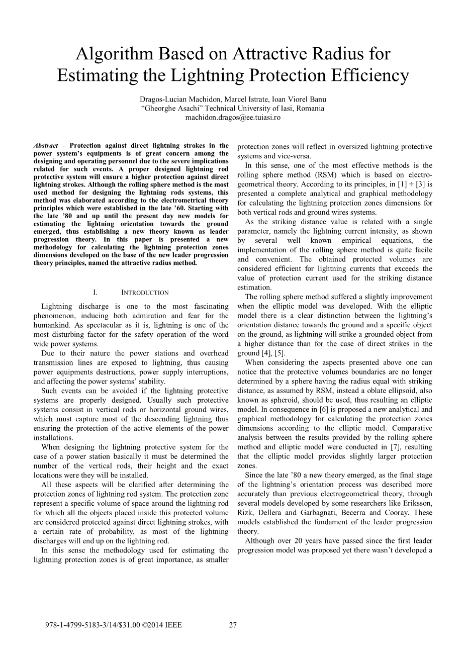 当考虑上述方面时,可以注意到,保护边界不再由半径等于撞击距离的球体确定,如RSM所假设的,应该是使用扁椭球体,也称为椭球体,从而产生椭圆模型。在[6]中提出了一种根据椭圆模型计算保护区尺寸的新的分析和图形方法。在[7]中对滚球法和椭圆模型提供的结果进行了比较分析,结果是椭圆模型提供了稍大一些的保护区。