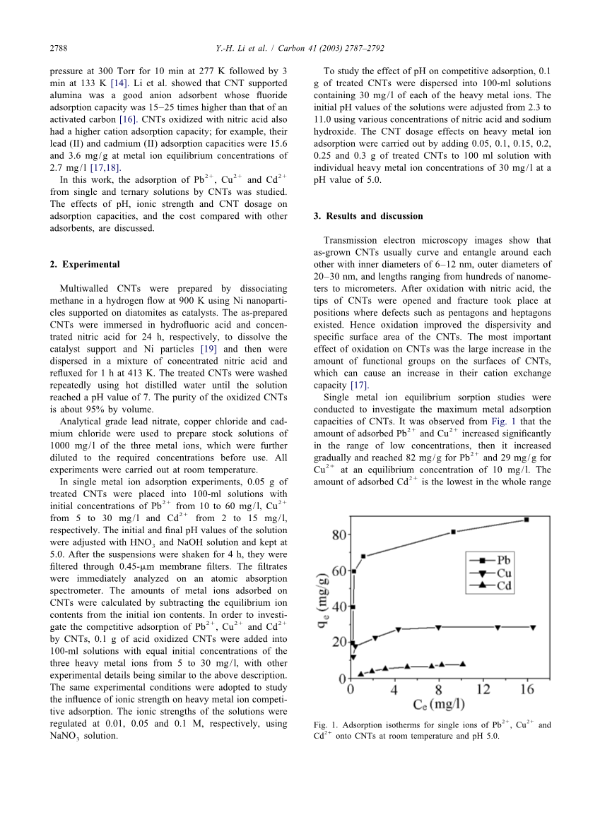 多壁碳纳米管对水溶液中Pb2 、Cu2 、Cd2 等离子的竞争吸附外文翻译资料