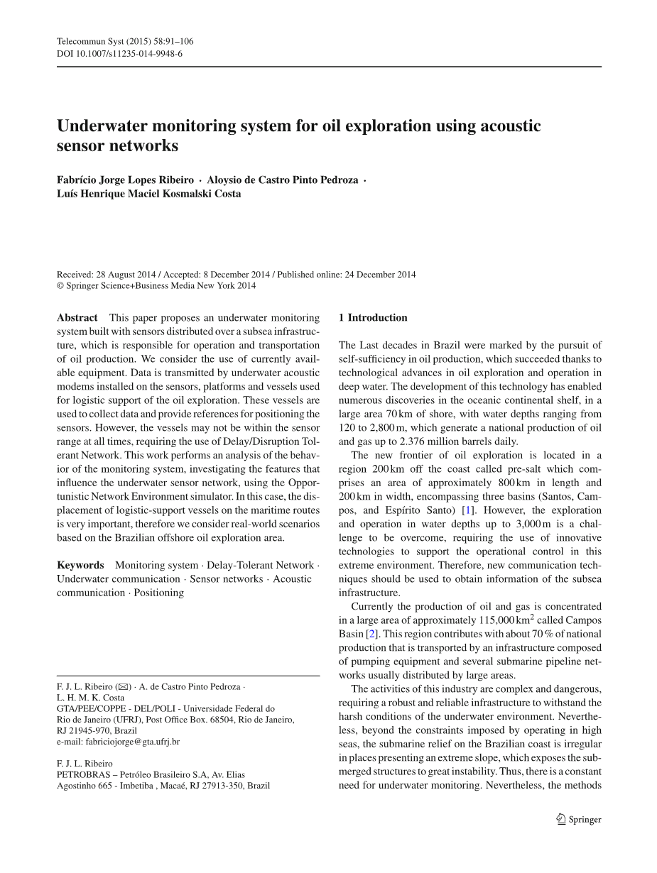 石油勘探的新领域是坐落在一个地区200公里的海岸被称为盐包括约800公里,宽200公里的区域,涵盖三个盆地(Santos,坎波斯,和ESPiacute;朗图Santo)[ 1 ]。然而,在水深达3000米的勘探和操作是一个挑战要克服,需要使用创新的技术,以支持在这种极端环境下的操作控制。因此,应使用新的通信技术,以获得信息的海底基础设施。