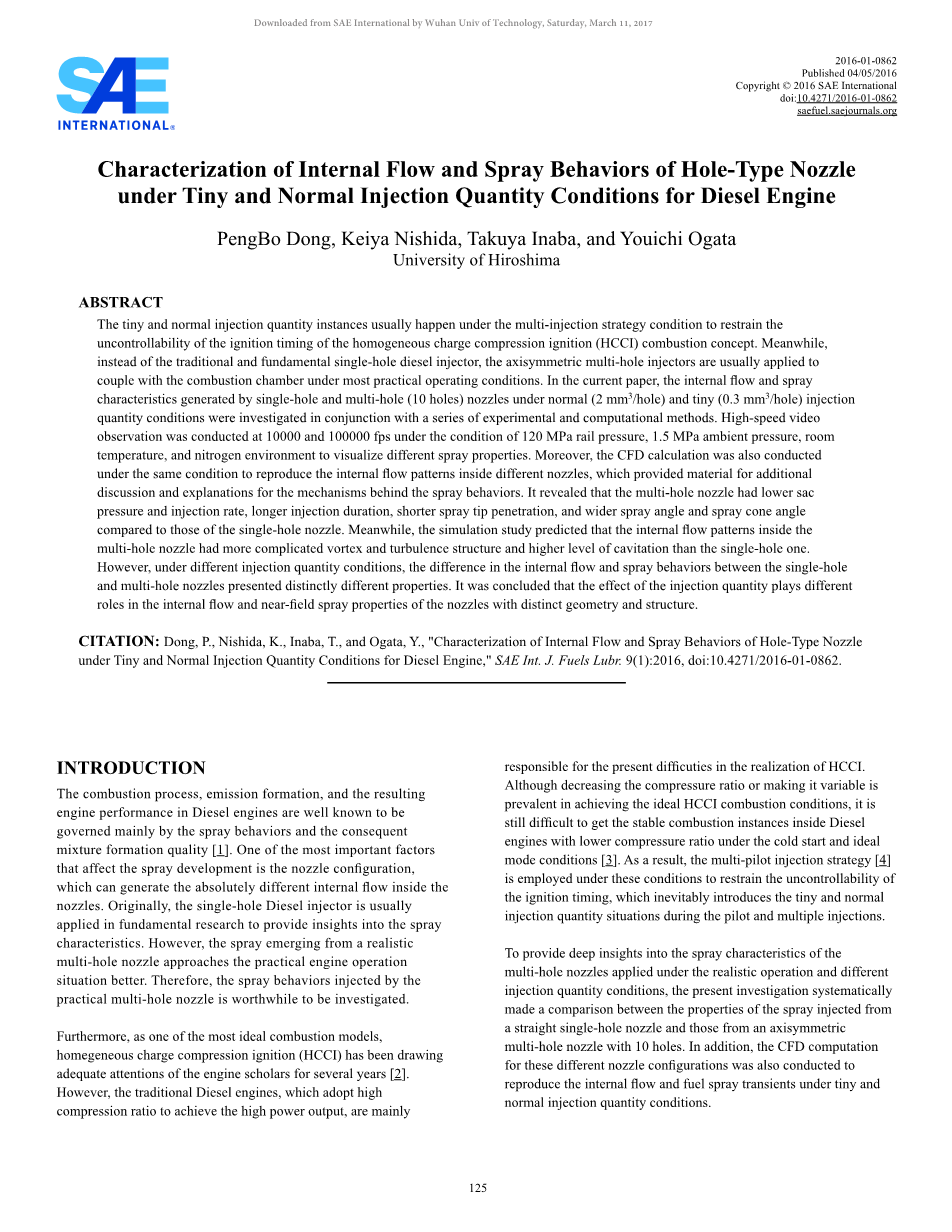 柴油机微小和正常喷射量下孔型喷嘴的内部流动和喷雾特性外文翻译资料